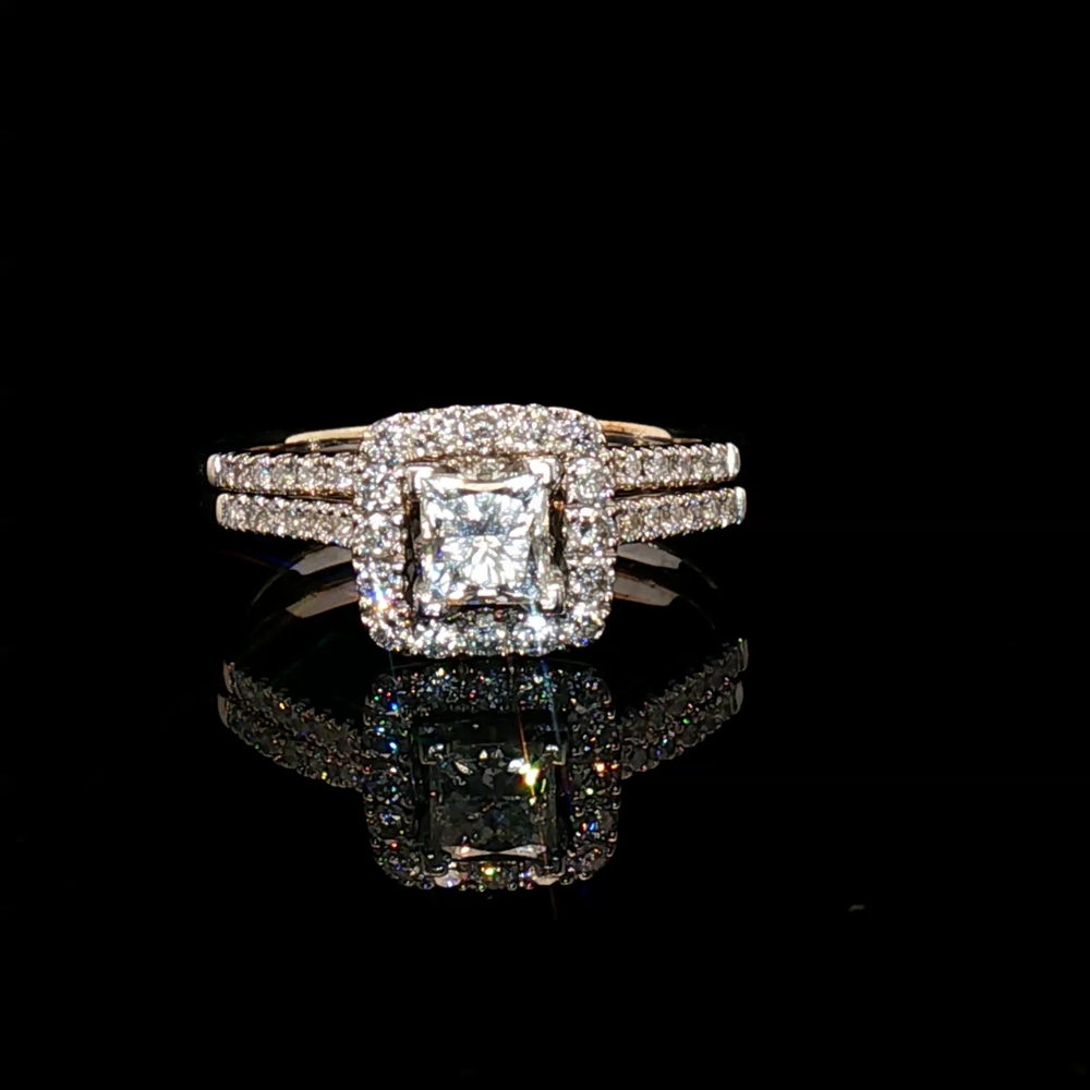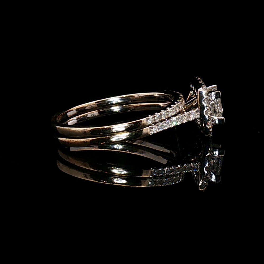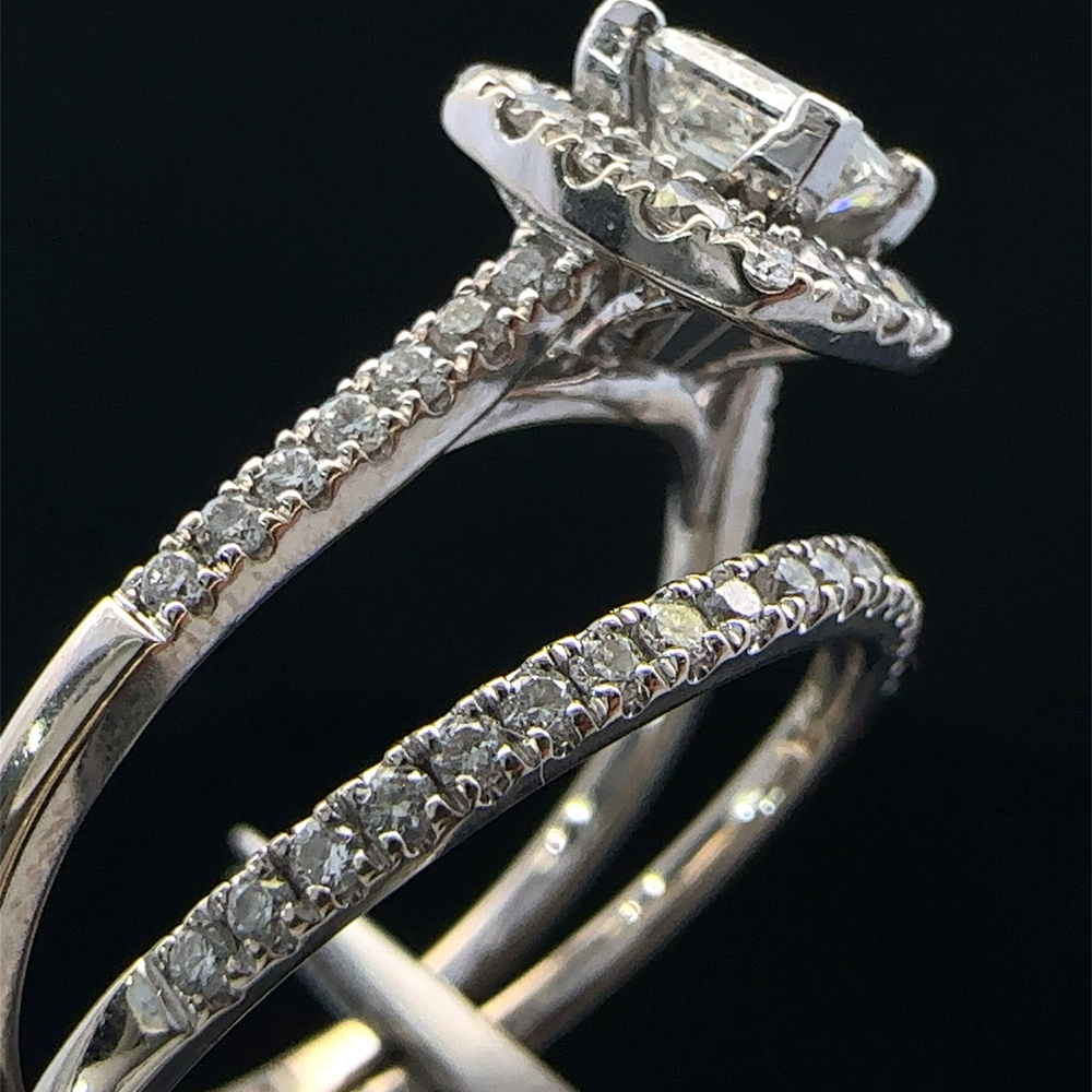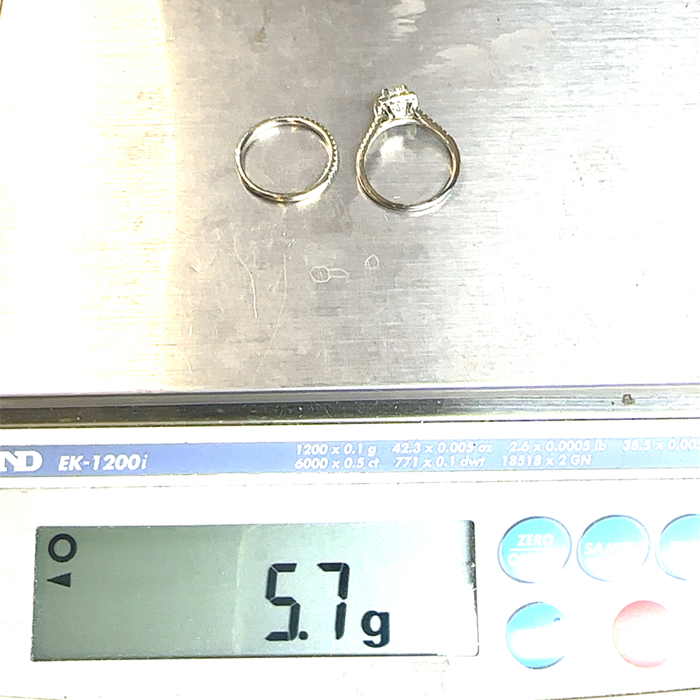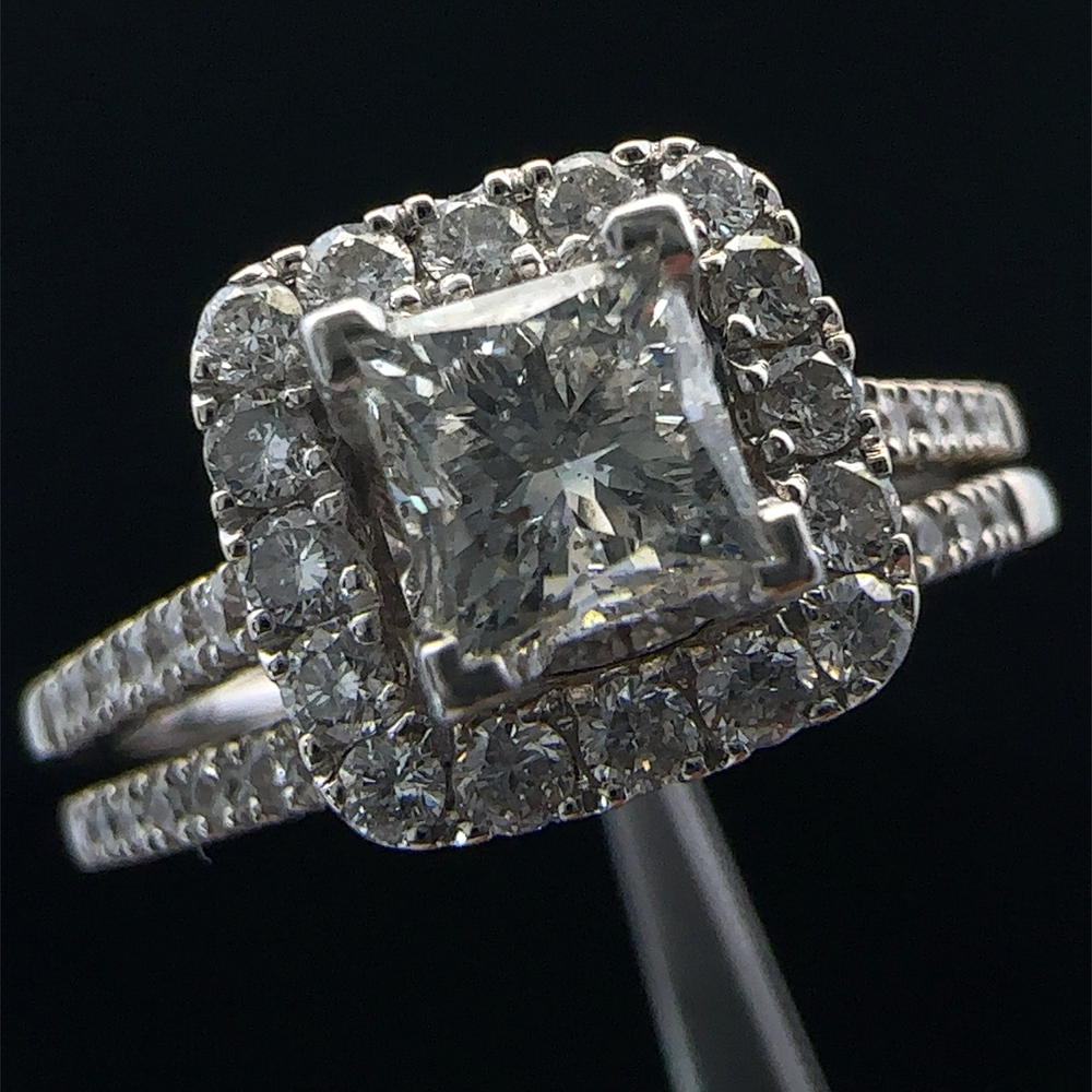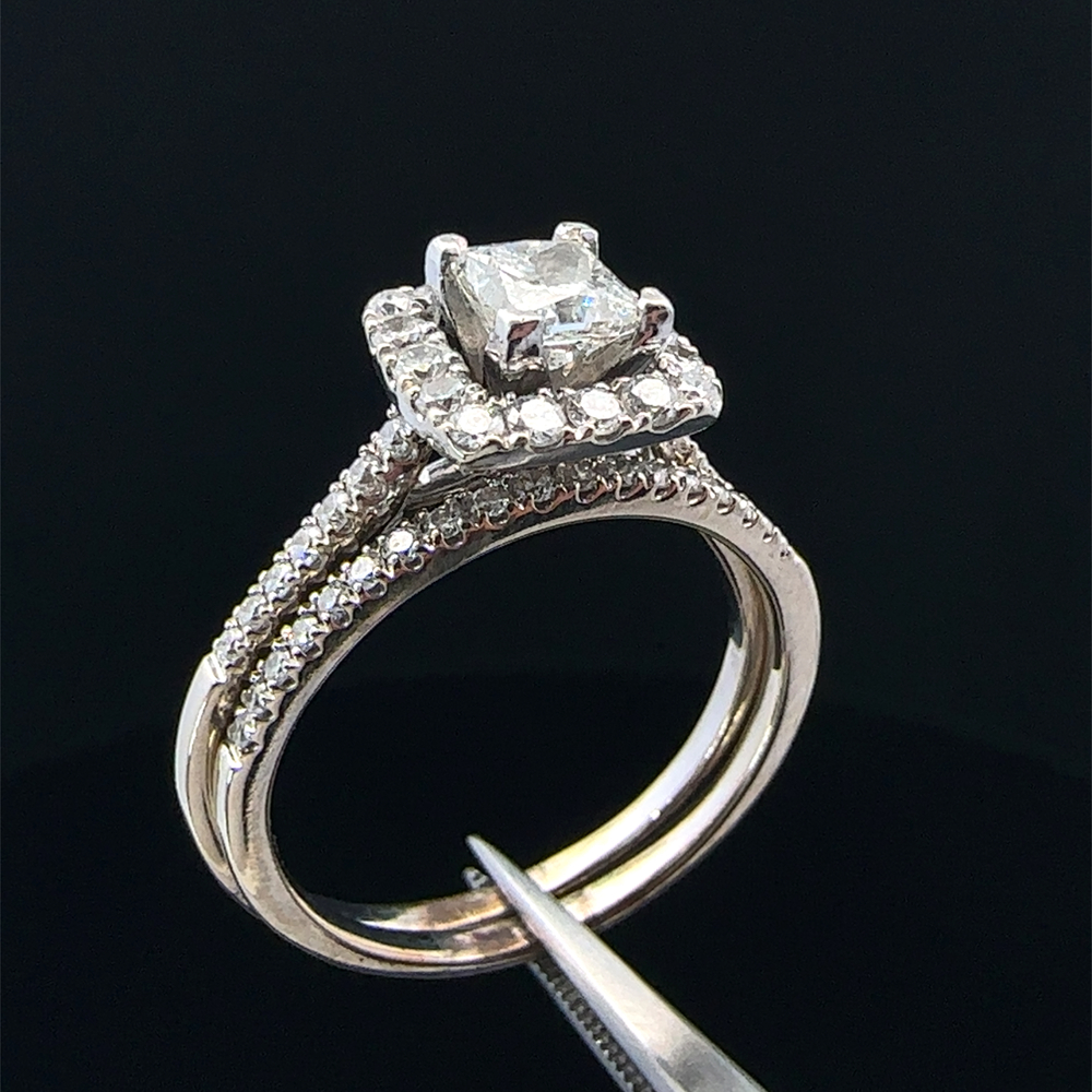 14KT White Gold Square Cut Diamond Ring Set Size 9.5 5.7g