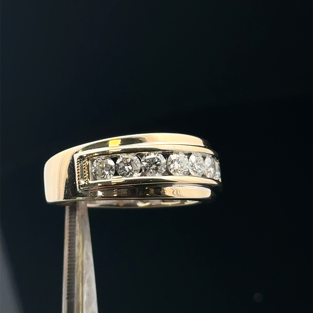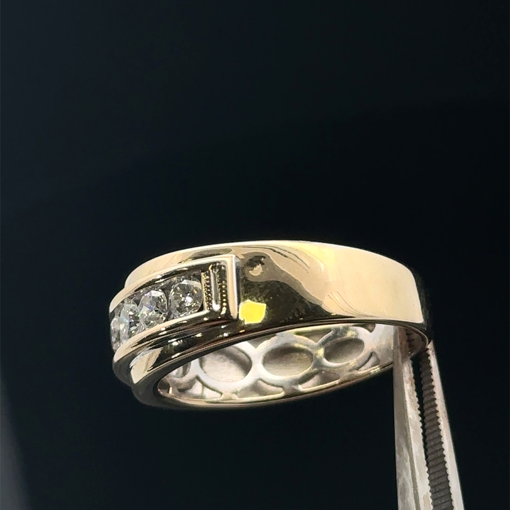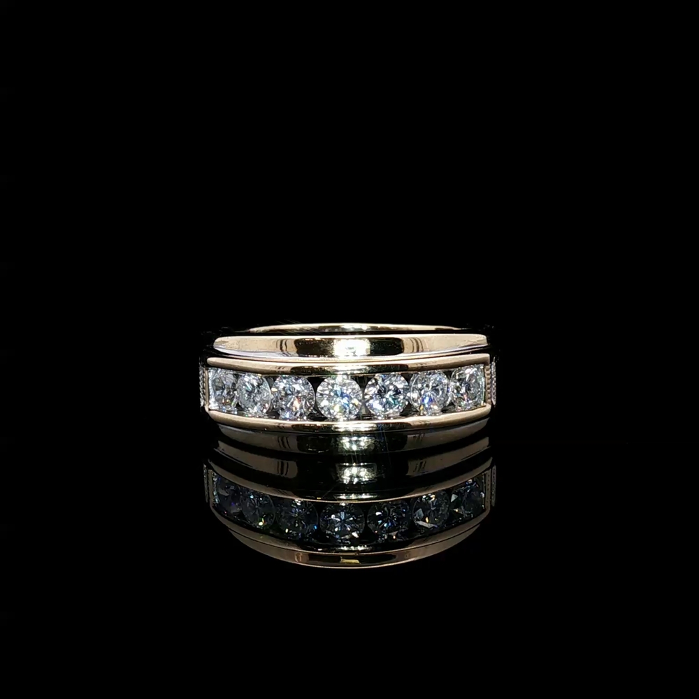 This 14KT yellow gold band showcases a total of 1 carat in diamonds, delivering a stunning, radiant sparkle. The ring is a size 11 and features a classic design that combines elegance with timeless appeal. Its polished gold finish enhances the brilliance of the diamonds, making it perfect for everyday wear or special occasions.