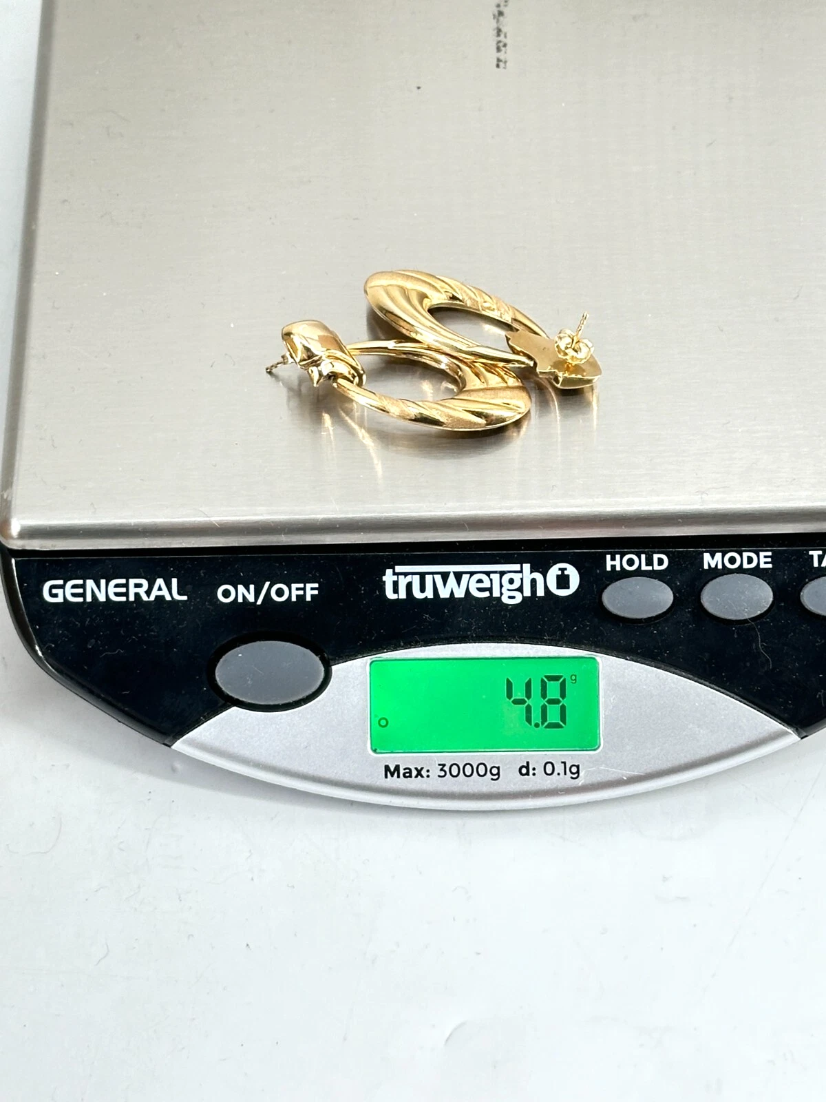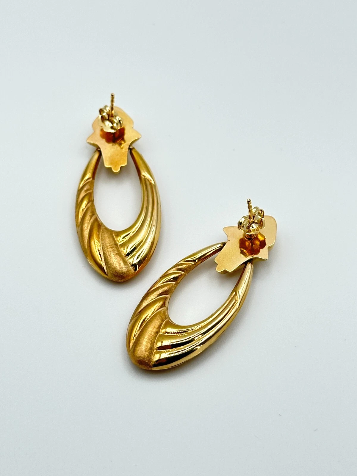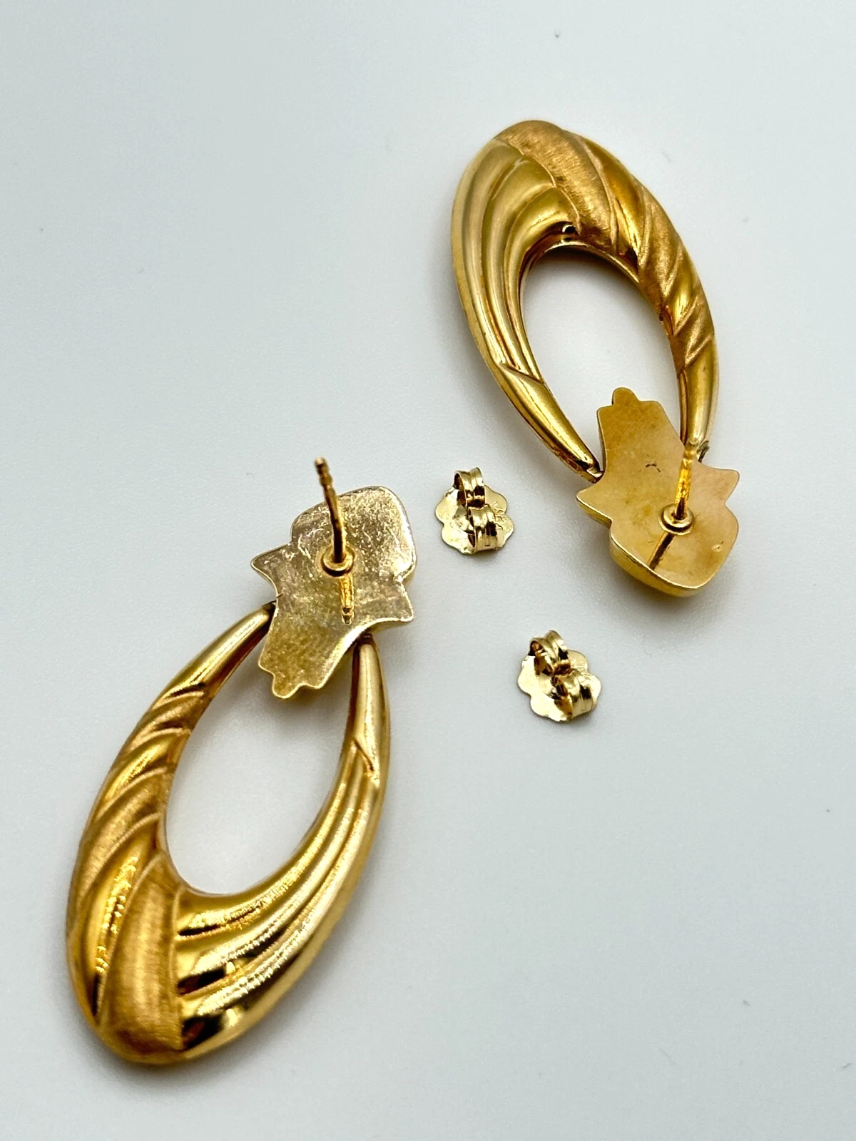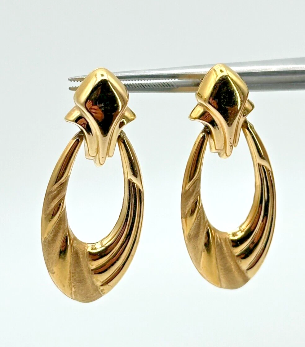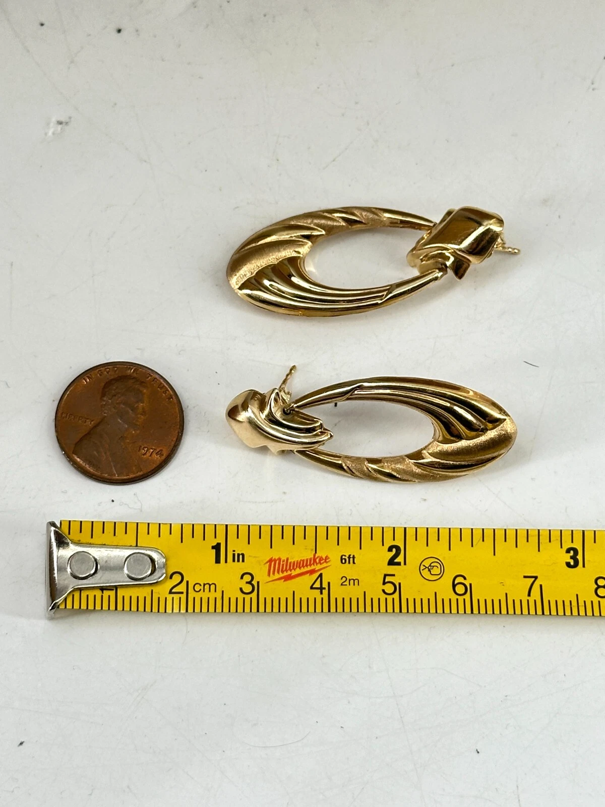 Crafted from genuine 14KT yellow gold, these dangle earrings showcase a warm and radiant tone that exudes timeless elegance. The high-polish finish enhances the natural luster of the gold, creating a brilliant shine that catches the light beautifully. The 14KT gold construction ensures both durability and a luxurious feel, making these earrings a reliable and stylish accessory for years to come.