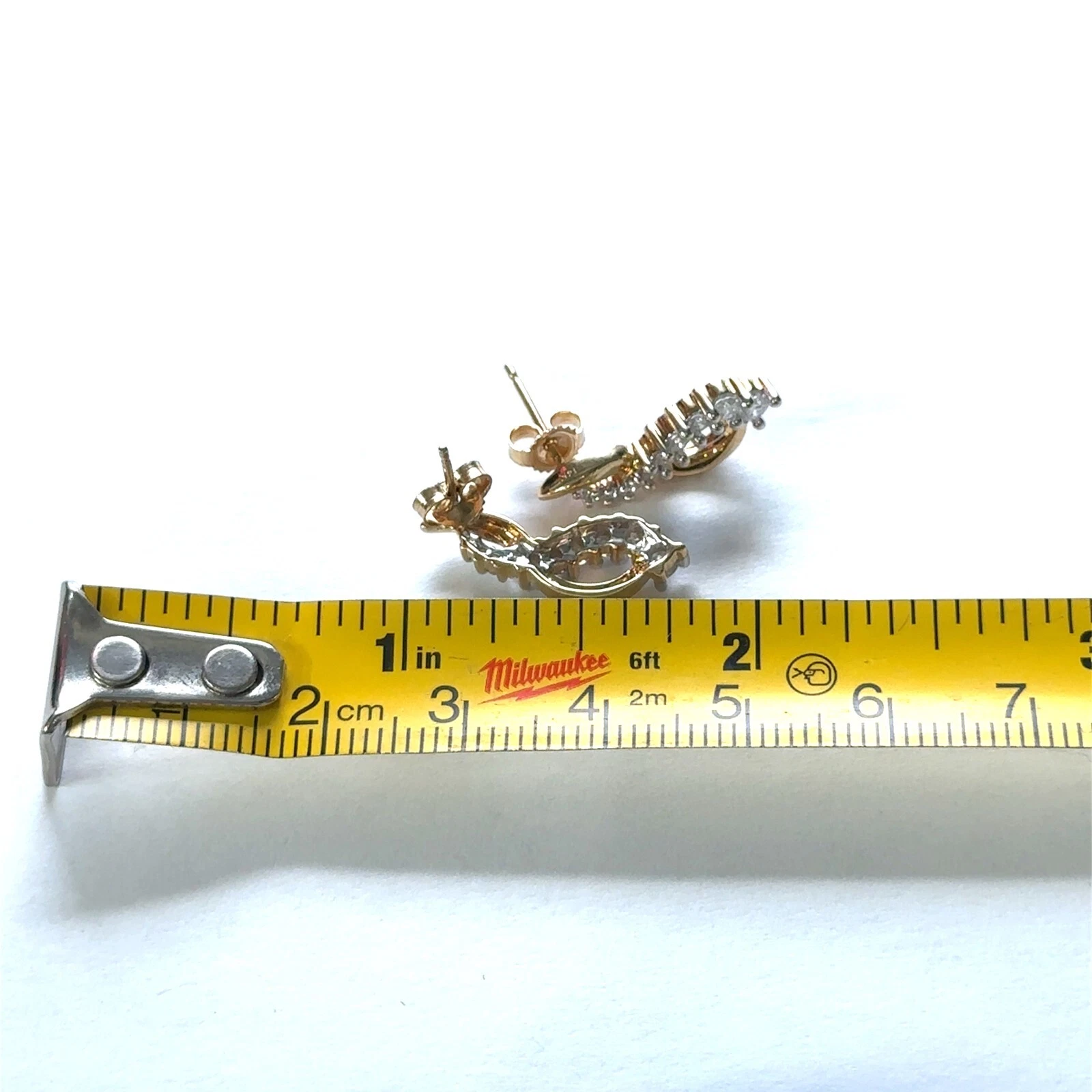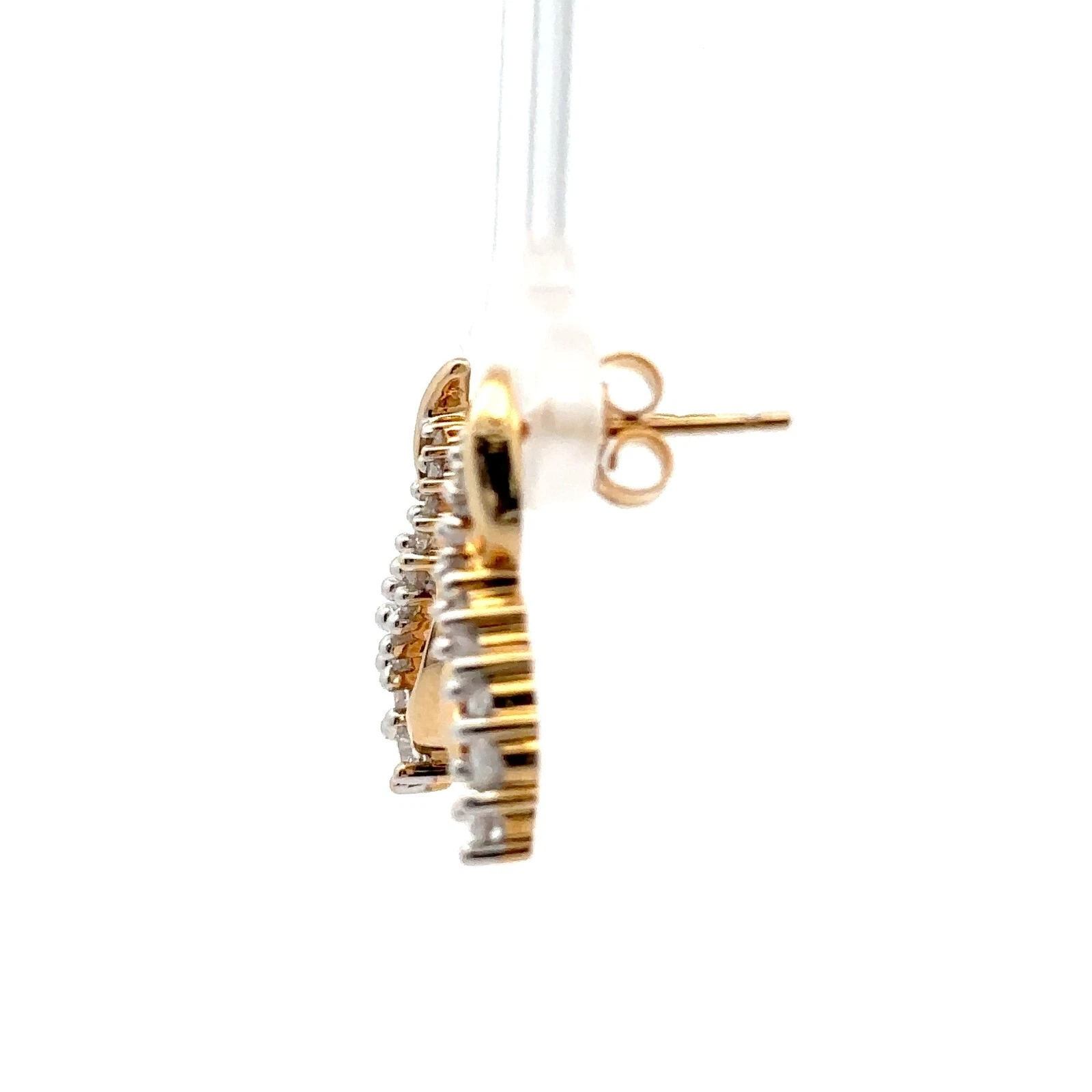 Made from 14 karat yellow gold, these earrings offer a classic and timeless look that complements virtually any style or occasion. The warm tone of the yellow gold enhances the brilliance of the diamonds and provides a traditional yet elegant backdrop that stands out without being overpowering. The finish is smooth and highly polished, creating a lustrous appearance that reflects light beautifully and adds to the overall luxurious feel of the piece.