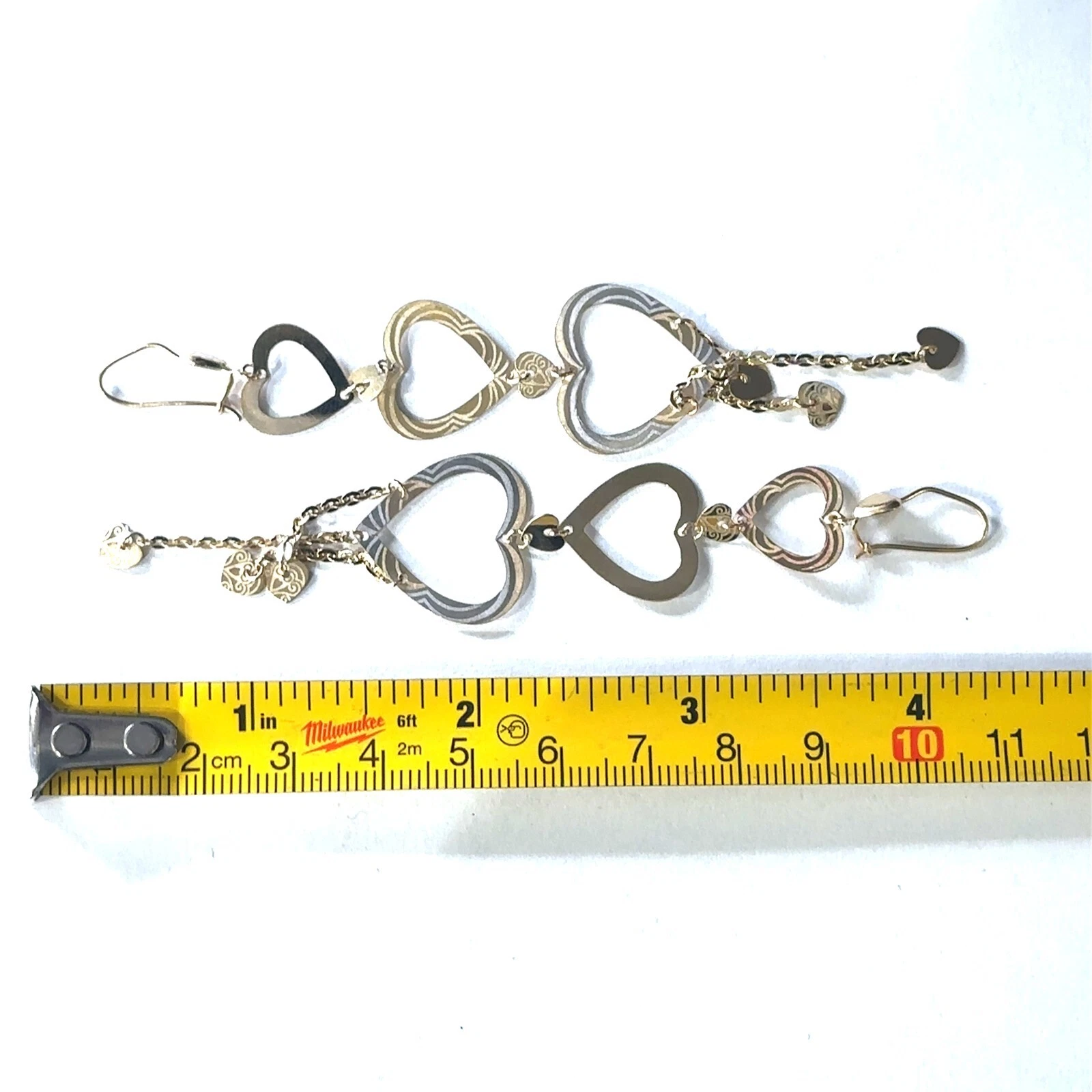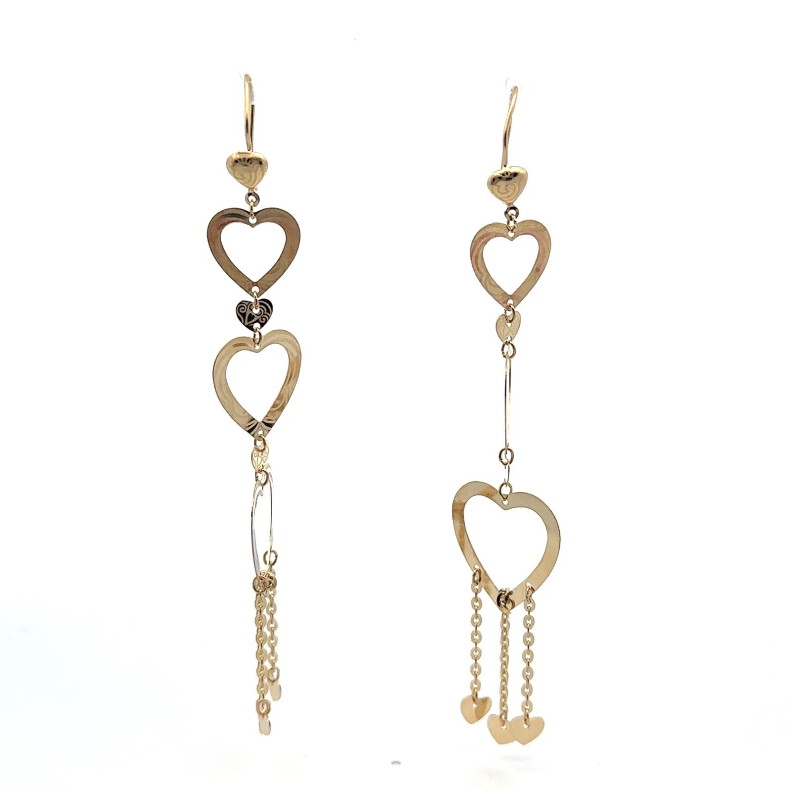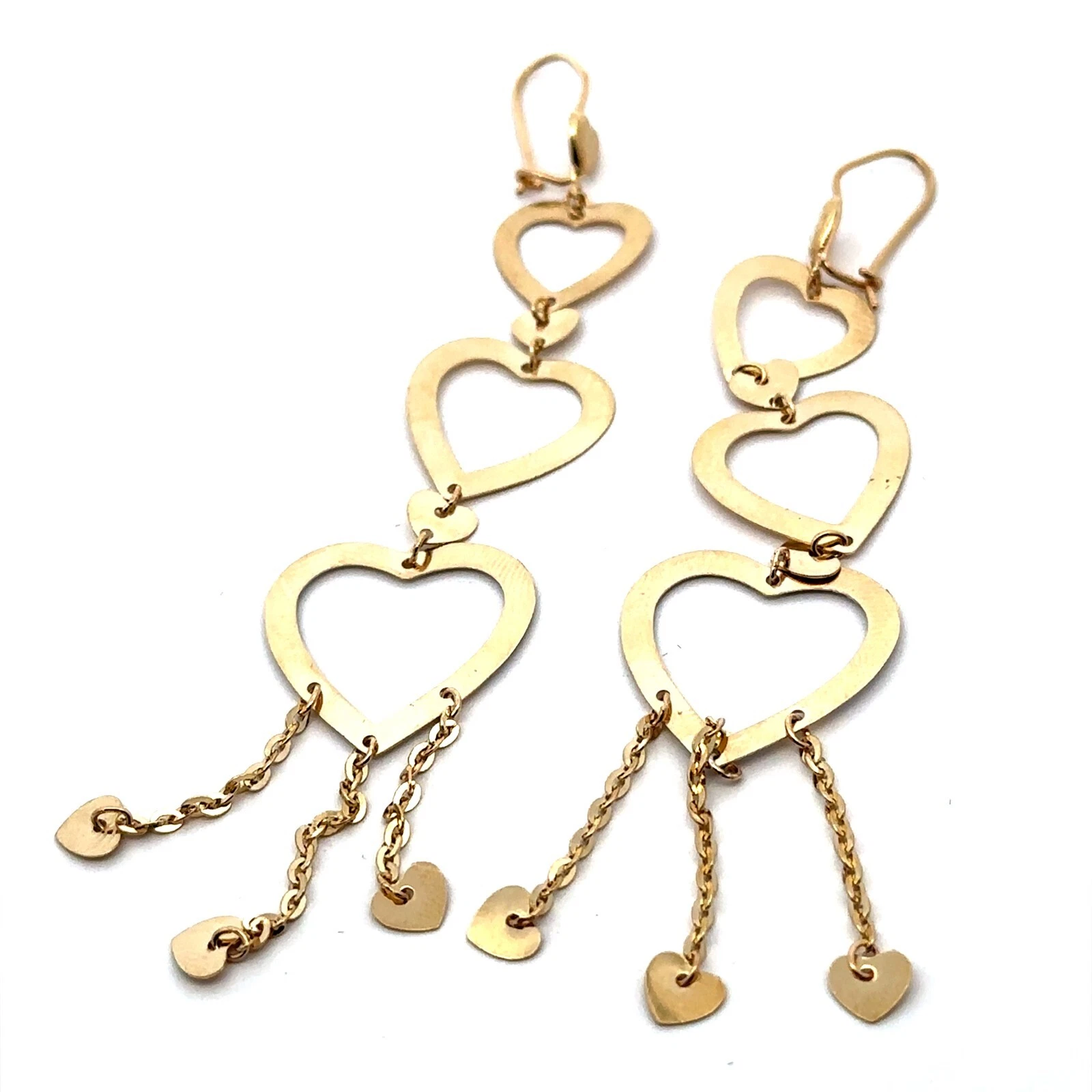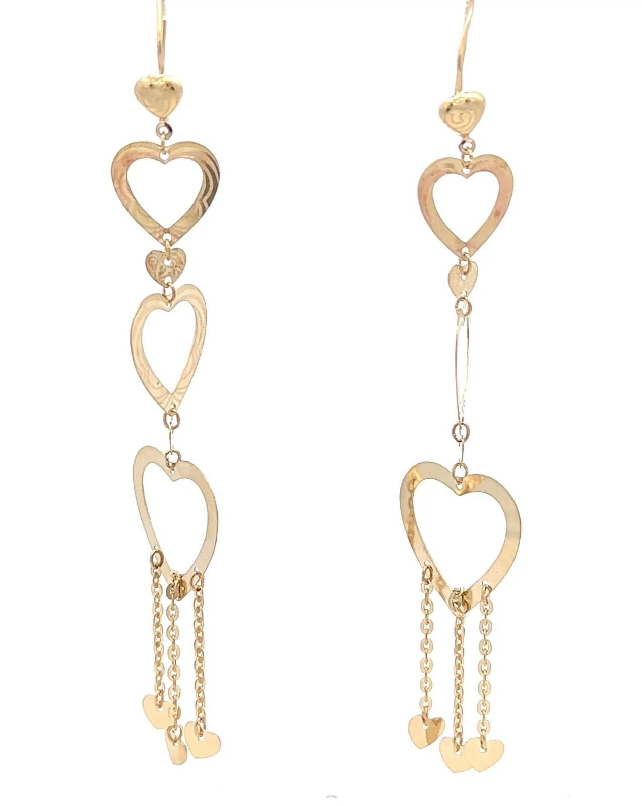 14KT Yellow Gold Heart Dangle Earrings 4.1g