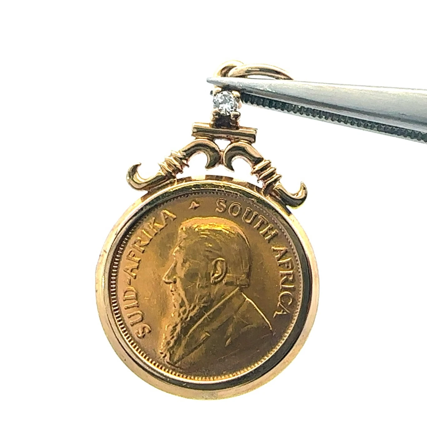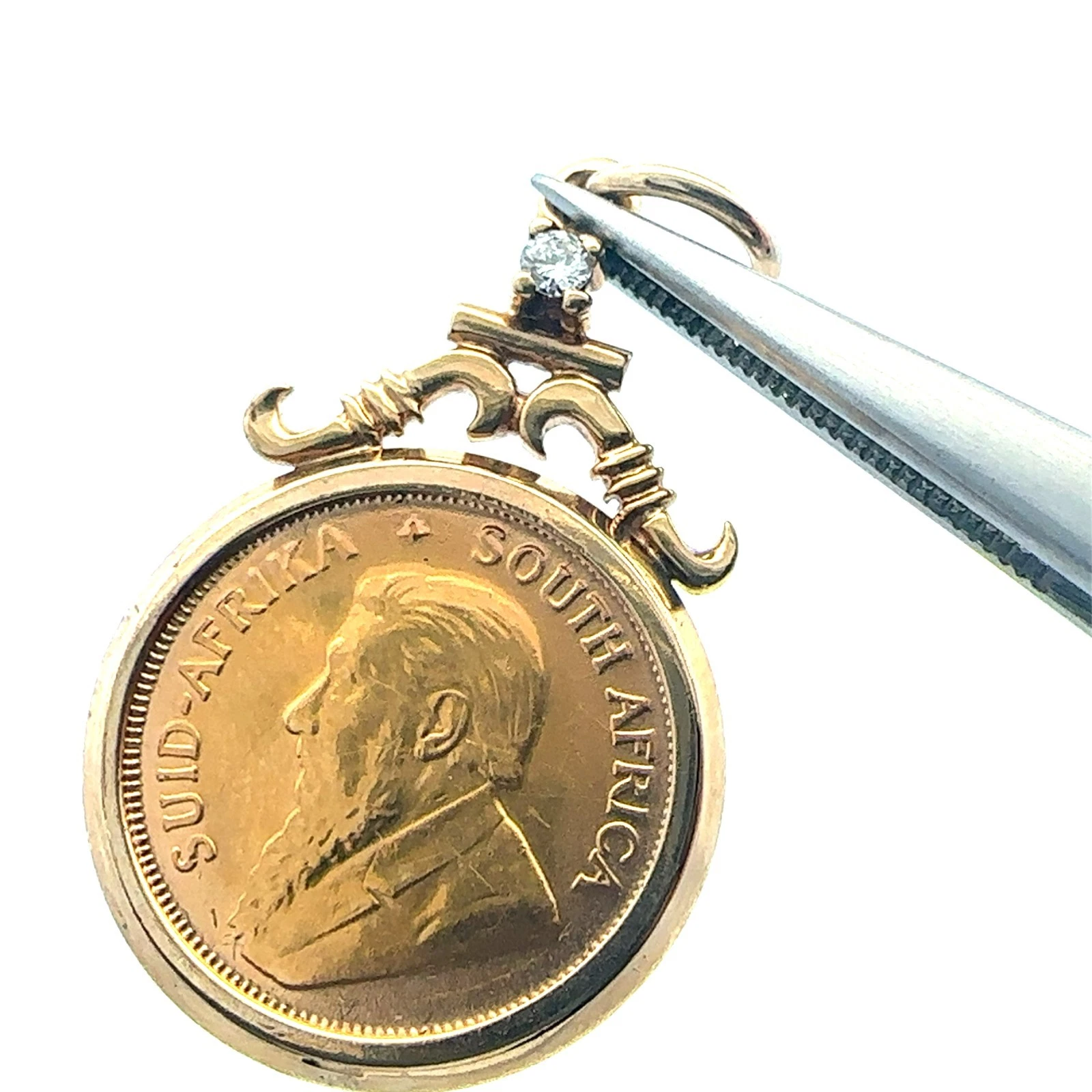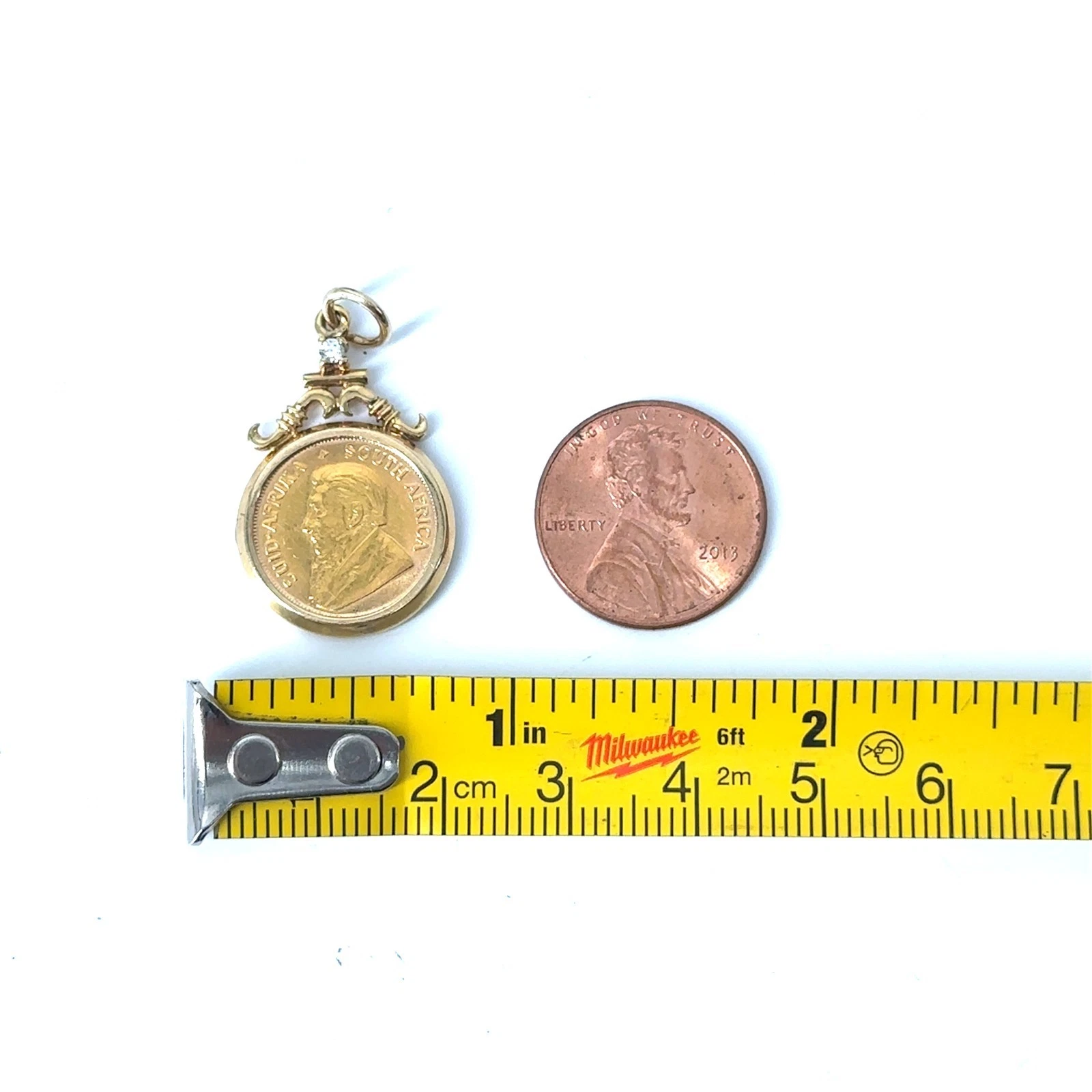 14KT Yellow Gold Pendant with Krugerrand and Diamond 4.9g