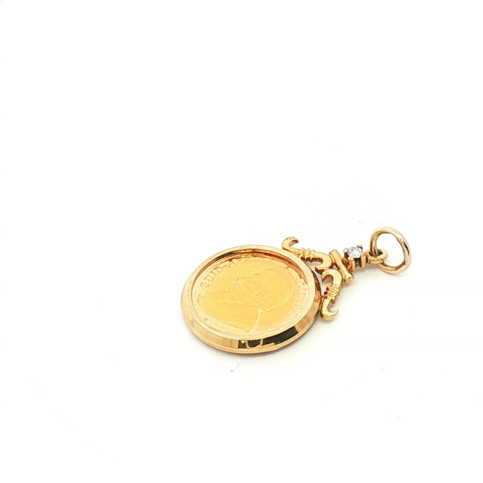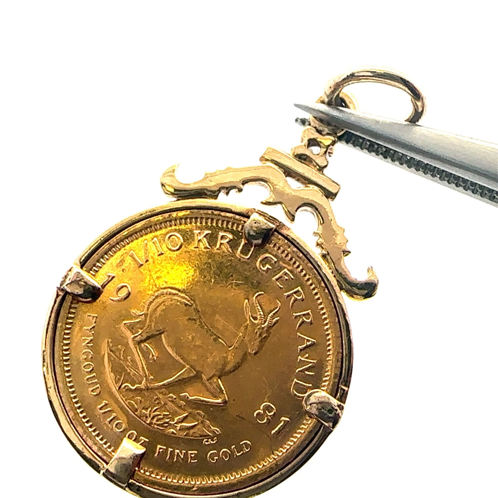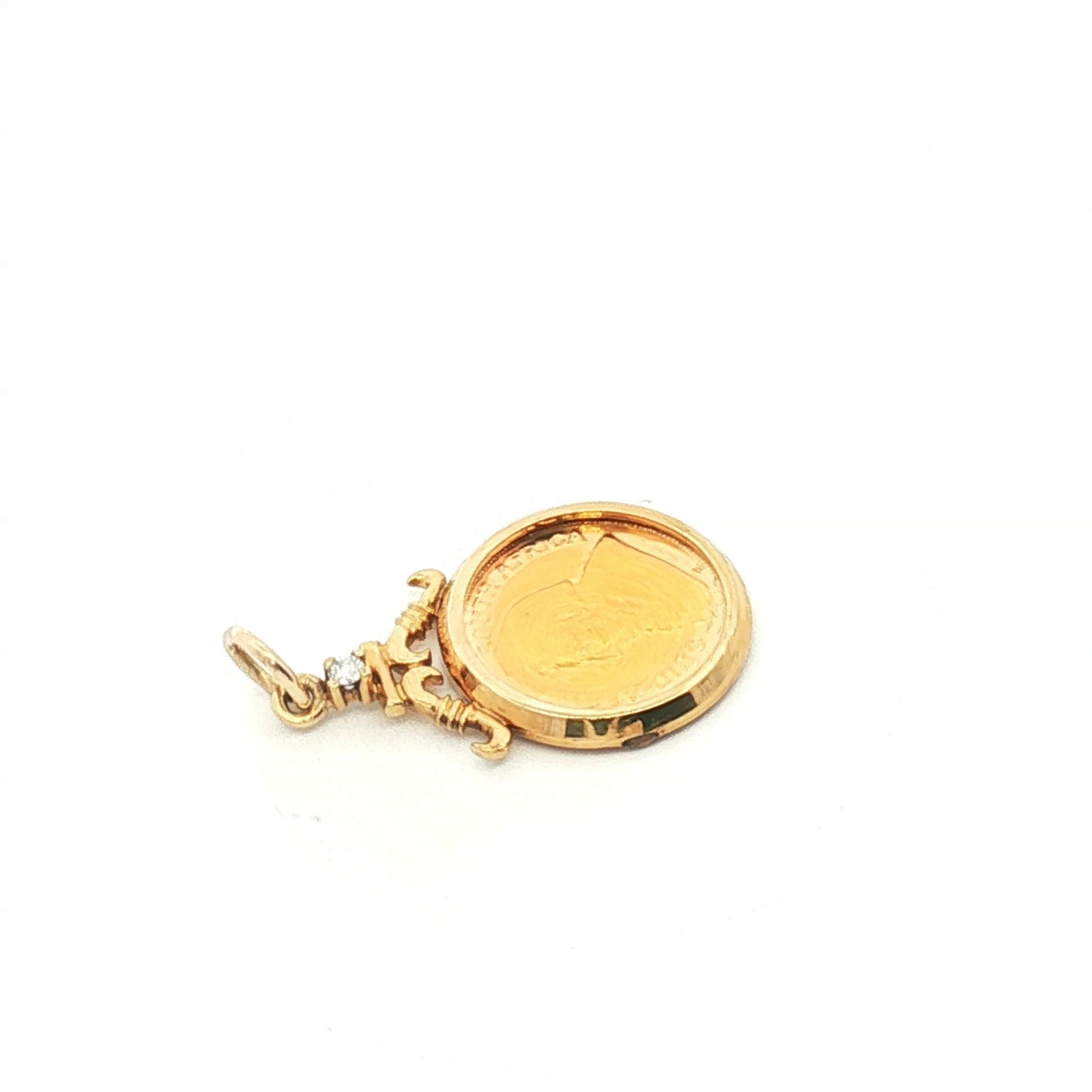 14KT Yellow Gold Pendant with Krugerrand and Diamond 4.9g