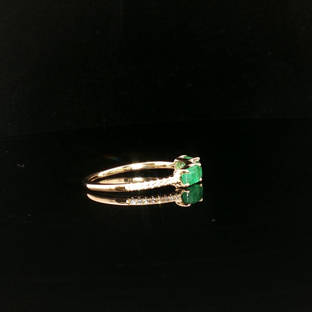 14KT Yellow Gold Ring with Emerald Stones - Size 7