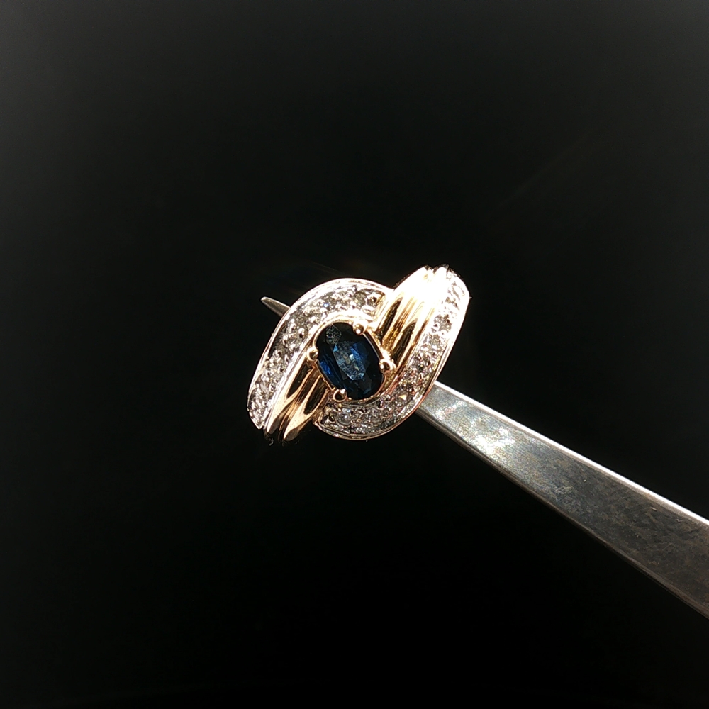 14KT Yellow Gold Sapphire and Diamond Ring - Size 5