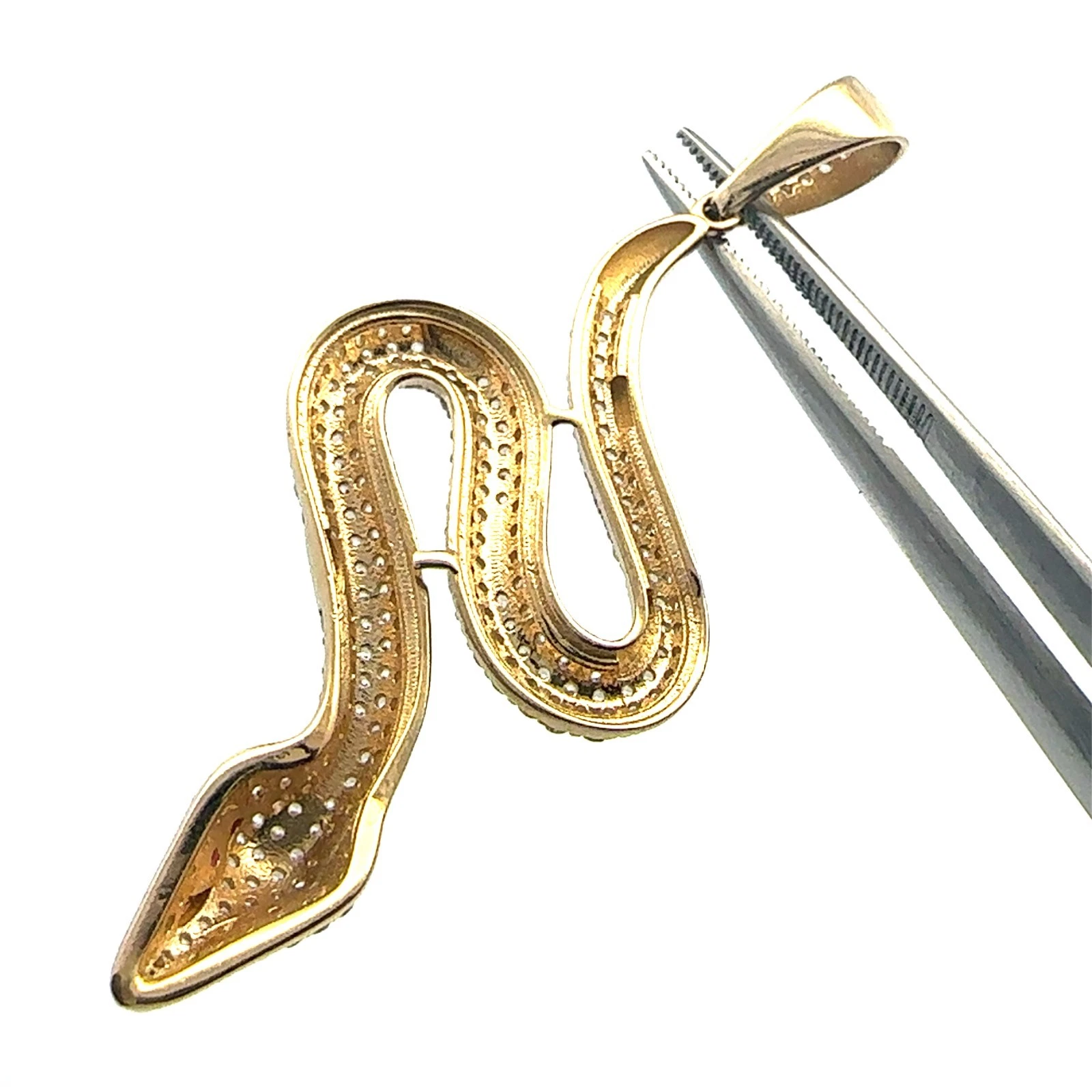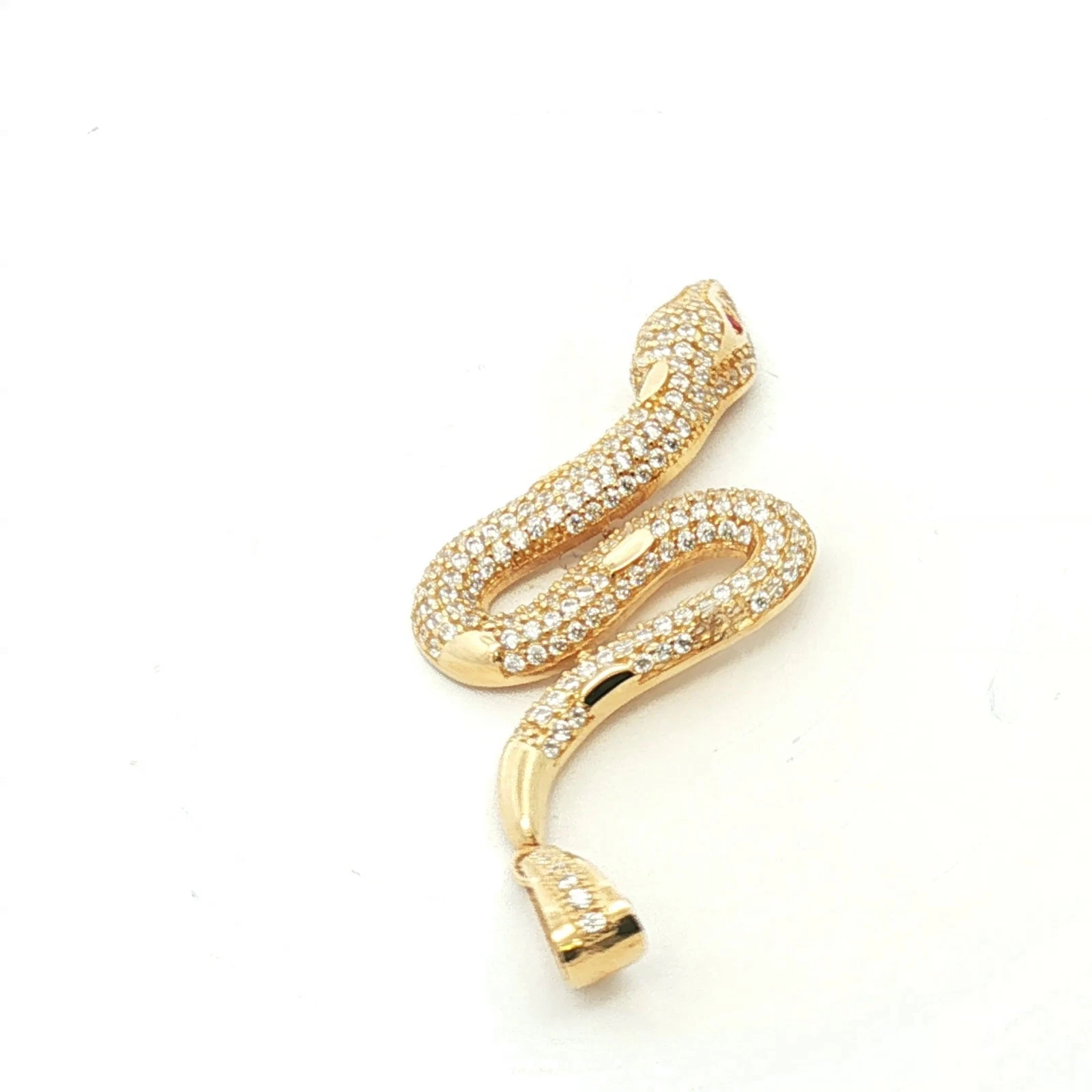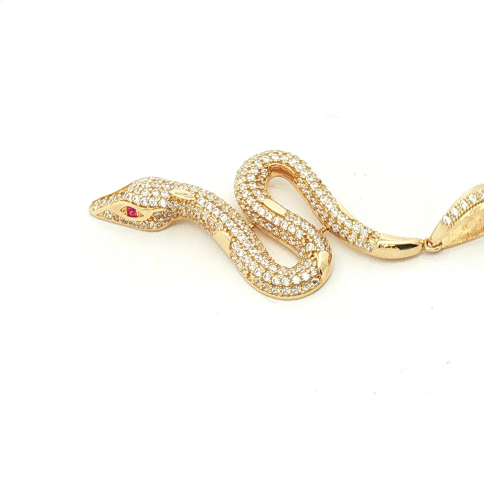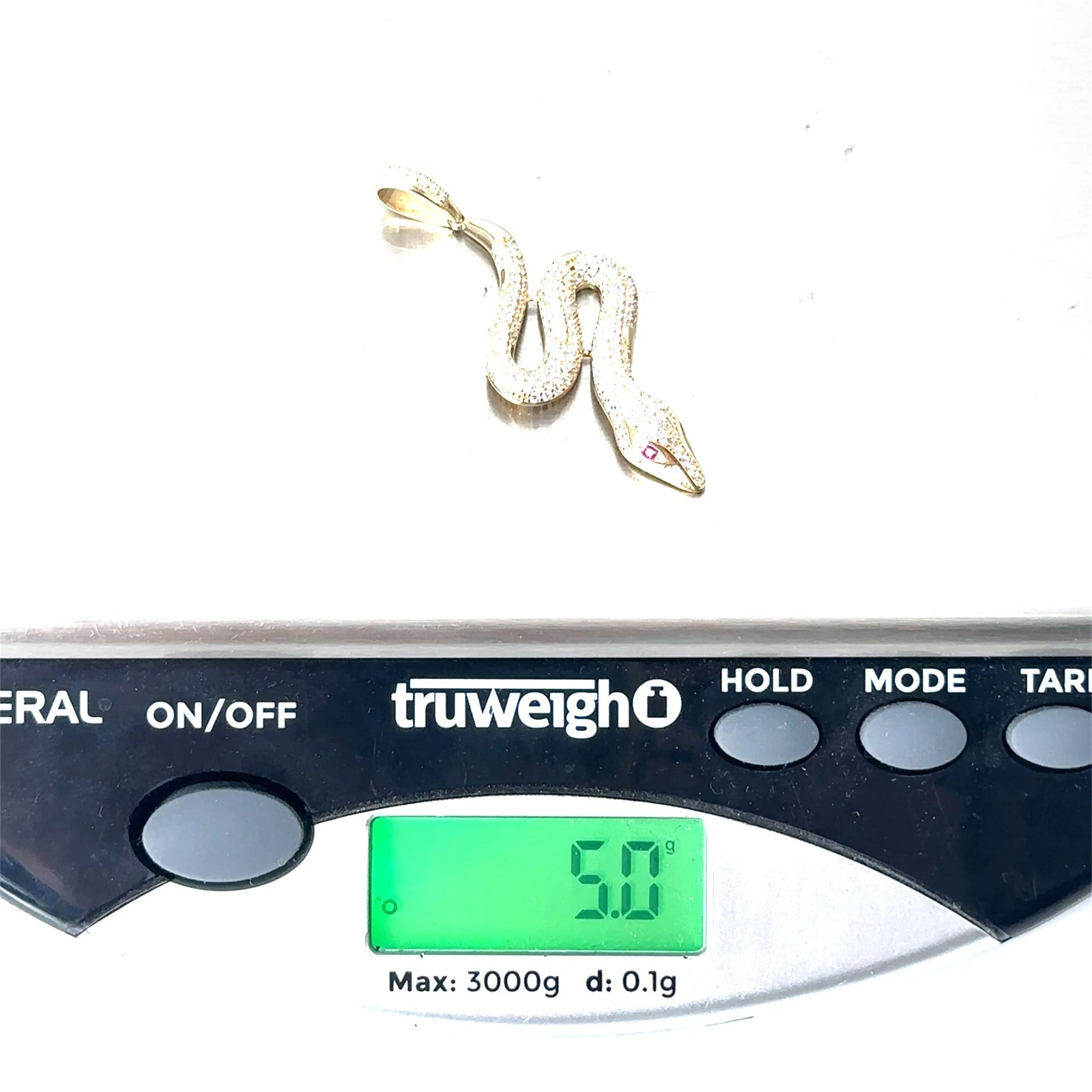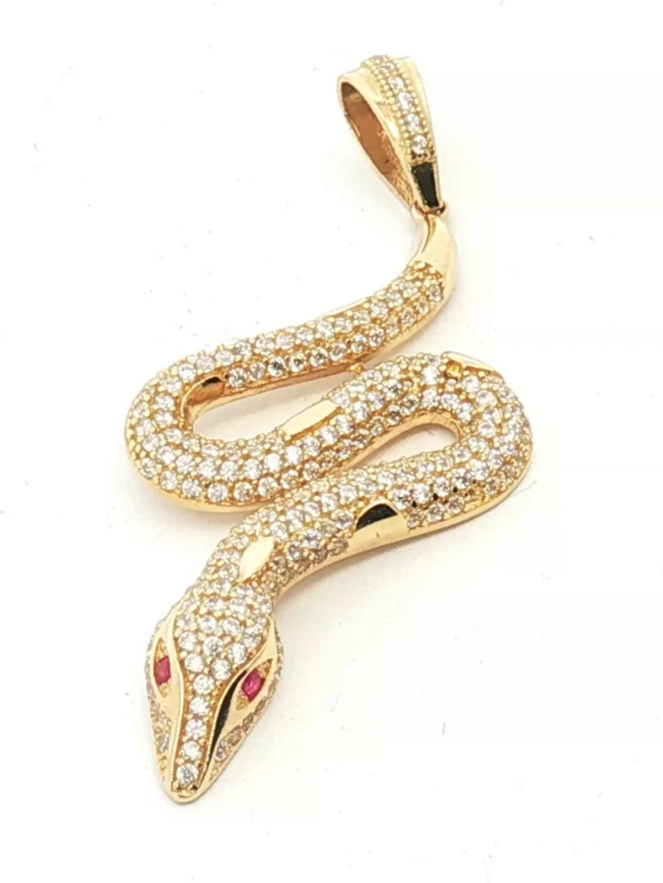 Made of 14KT yellow gold, this snake pendant features a detailed and elegant design accented with sparkling cubic zirconia stones that enhance its shine and visual appeal.