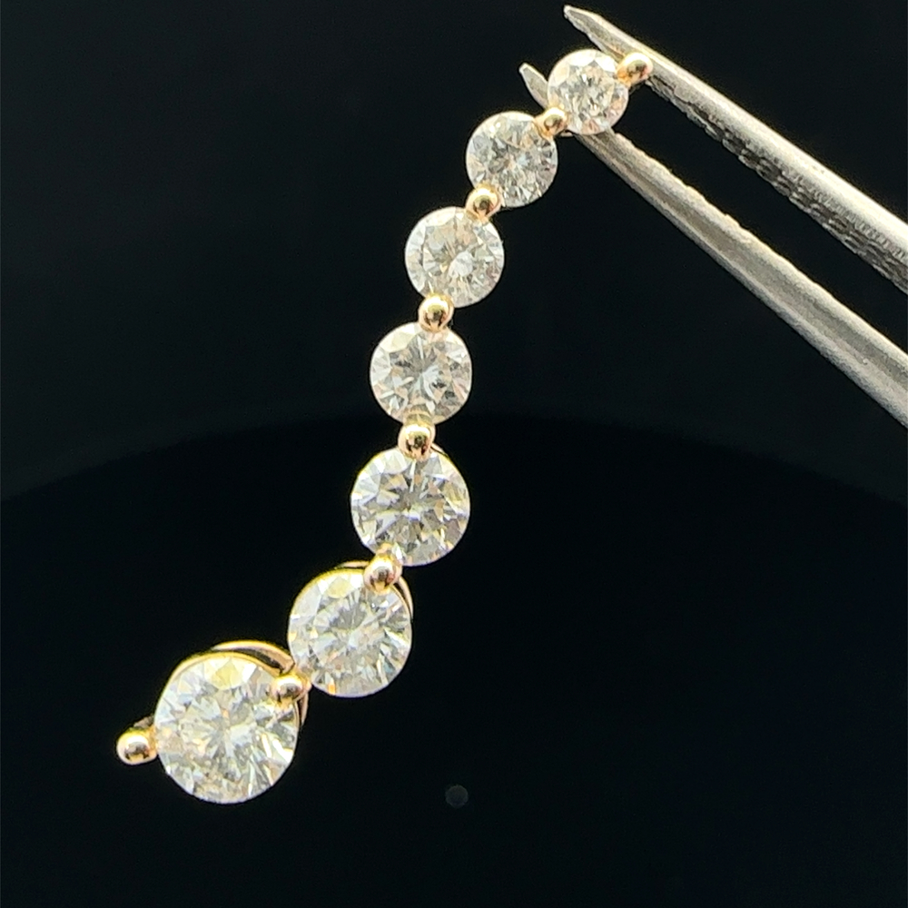 14KT yellow gold wavy diamond pendant features a flowing design accented with approximately 3/4 carat total diamond weight for eye-catching sparkle. The elegant shape and warm gold tone make it a versatile piece that pairs well with a variety of chains and styles, suitable for everyday wear or special occasions.