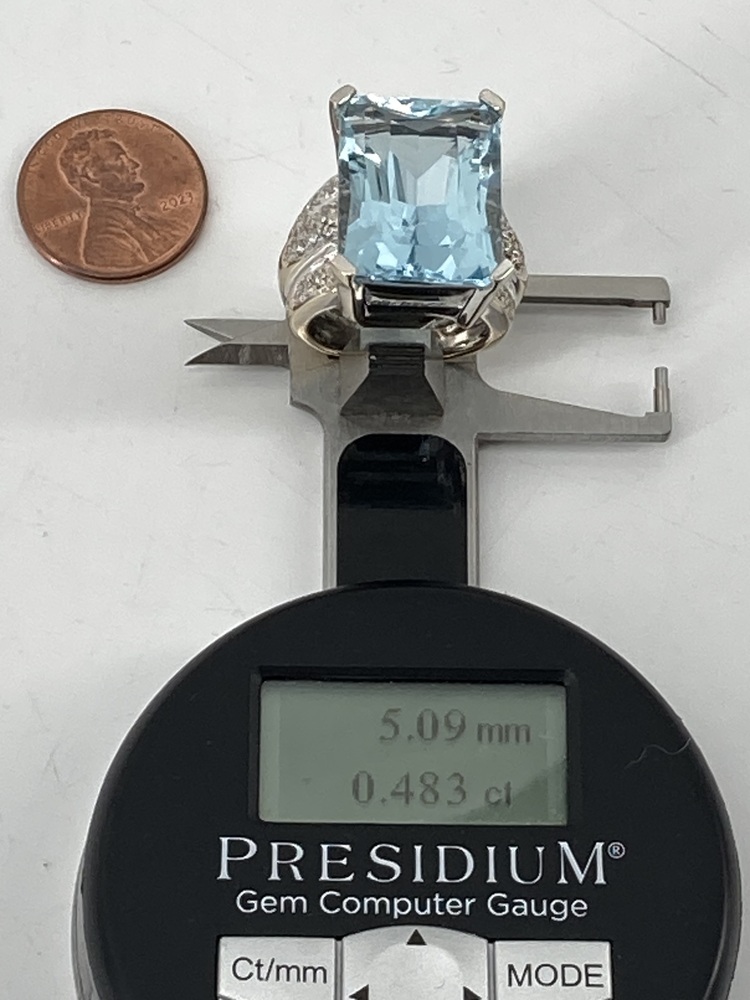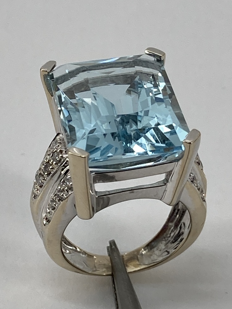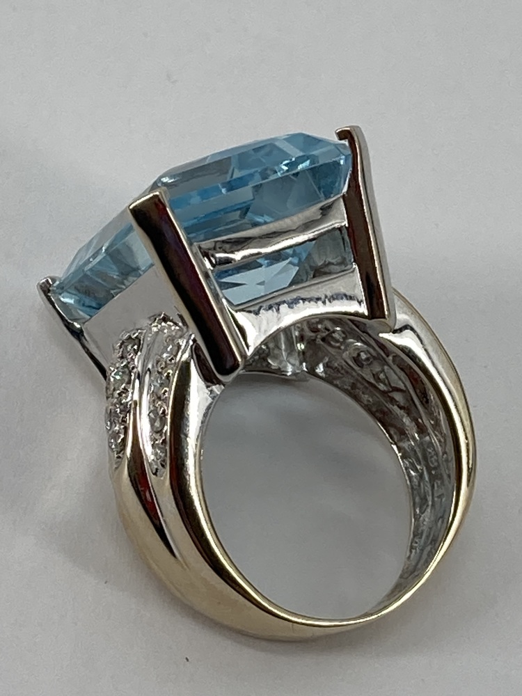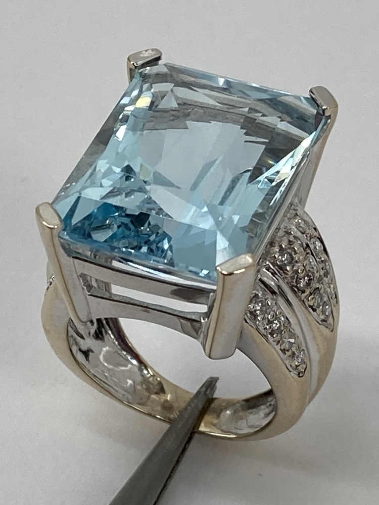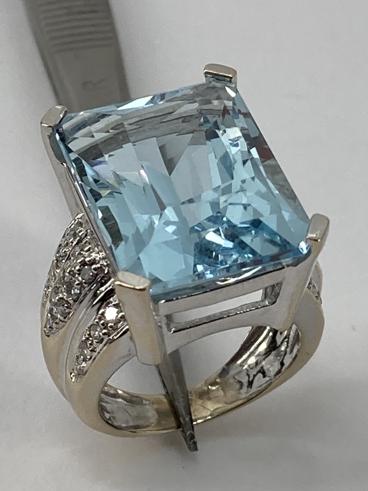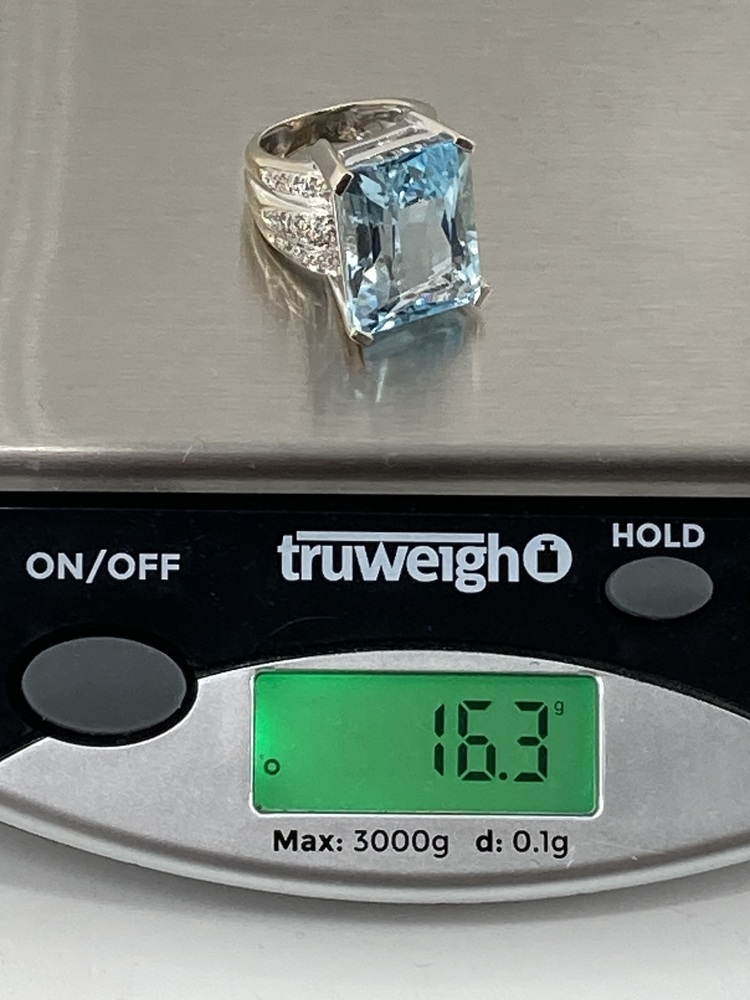 18KT White Gold 23CT Aquamarine Emerald Step Cut Ring Size 7 16.3g