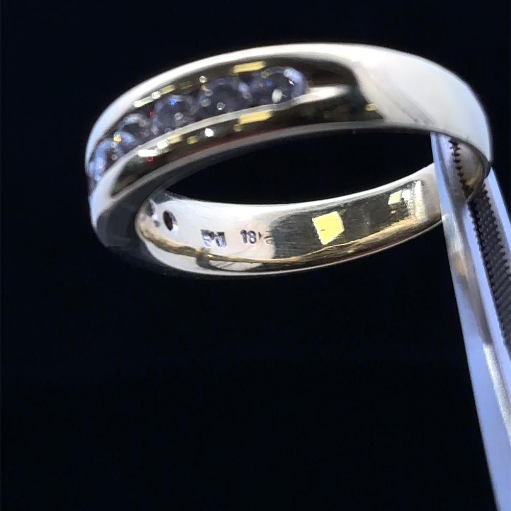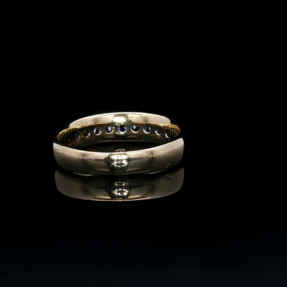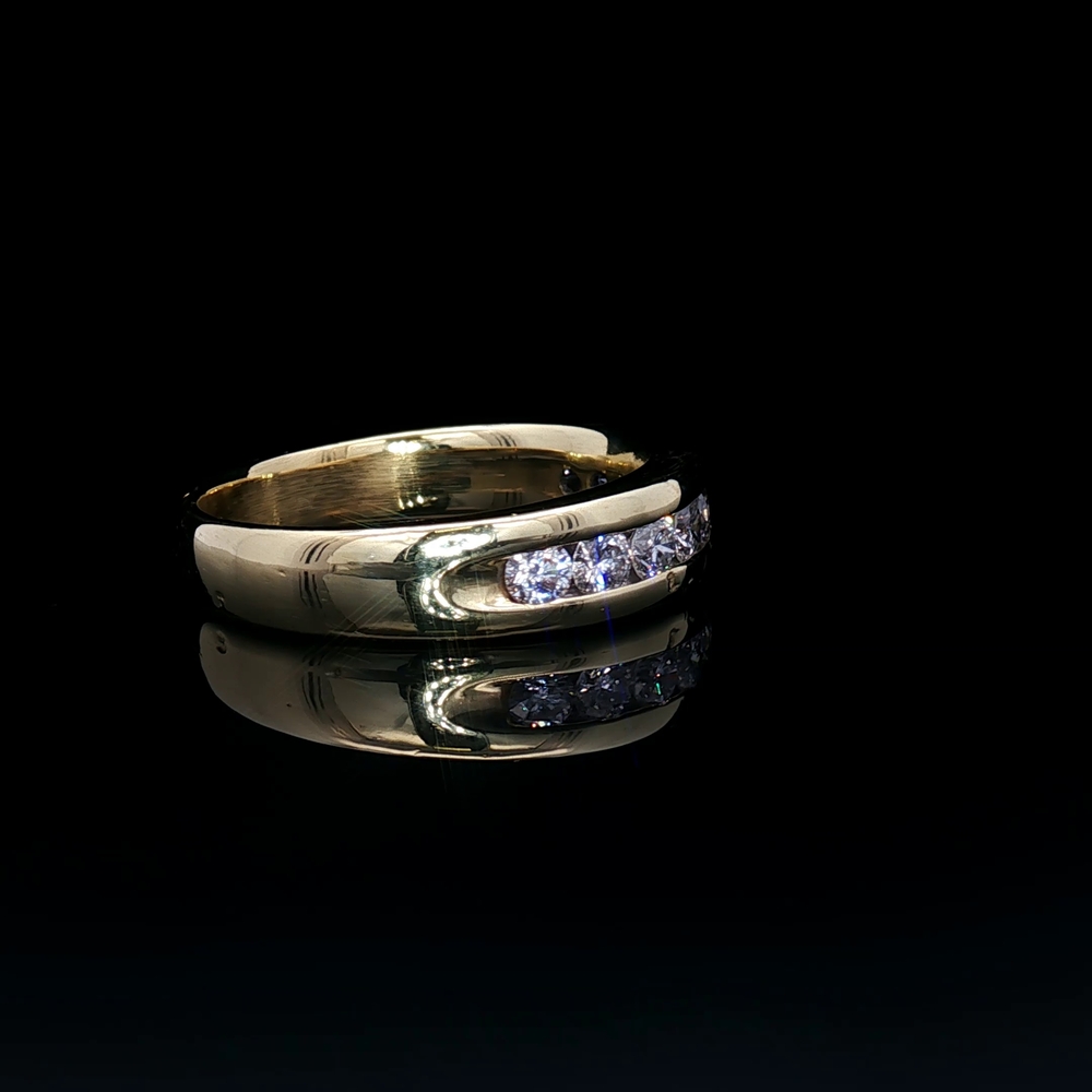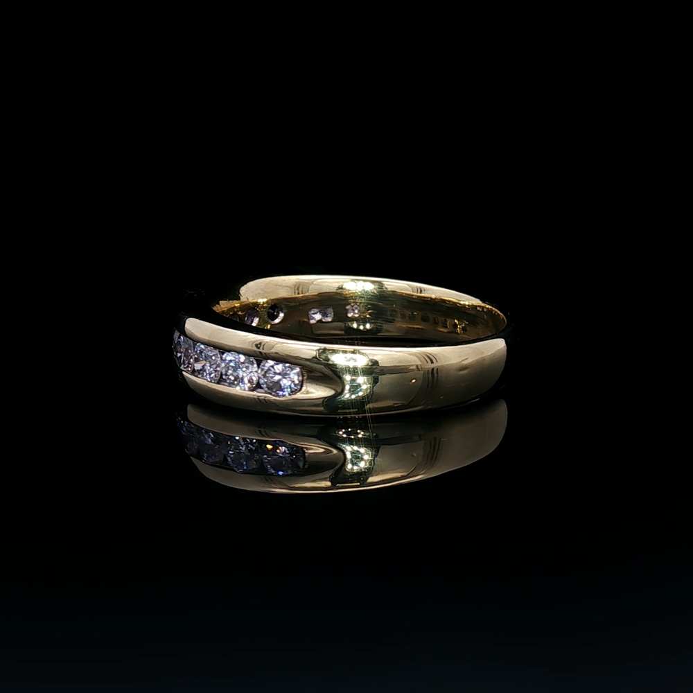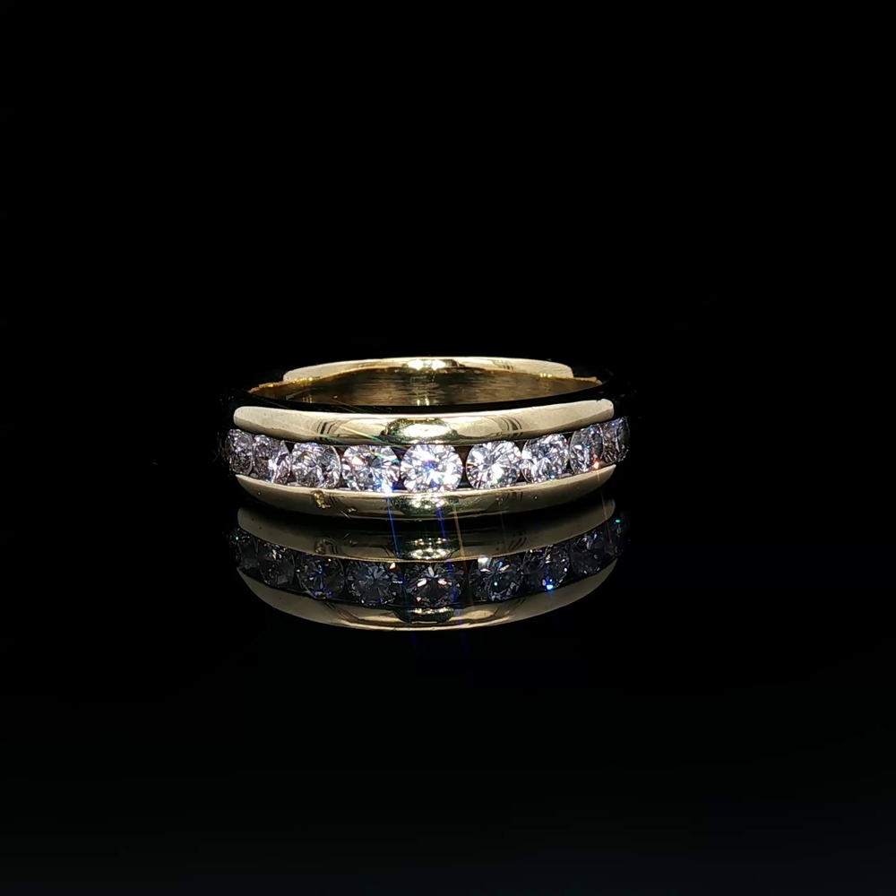 18KT yellow gold band featuring approximately 1 carat total weight of diamonds set in a bold and refined design. The rich gold enhances the brilliance of the stones, creating a striking combination of luxury and sparkle. Ring is a size 12 and offers a timeless, substantial look suitable for everyday wear or special occasions.