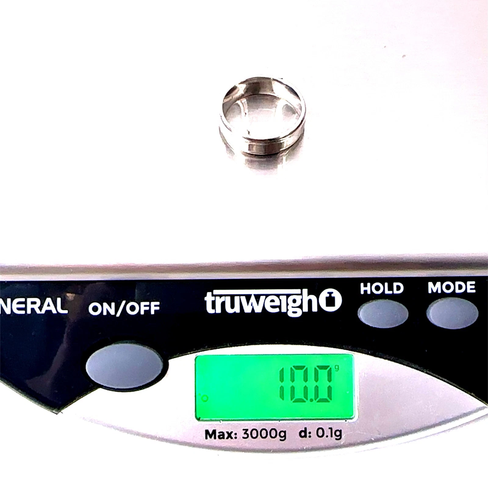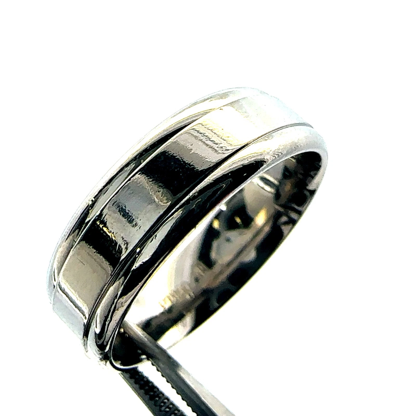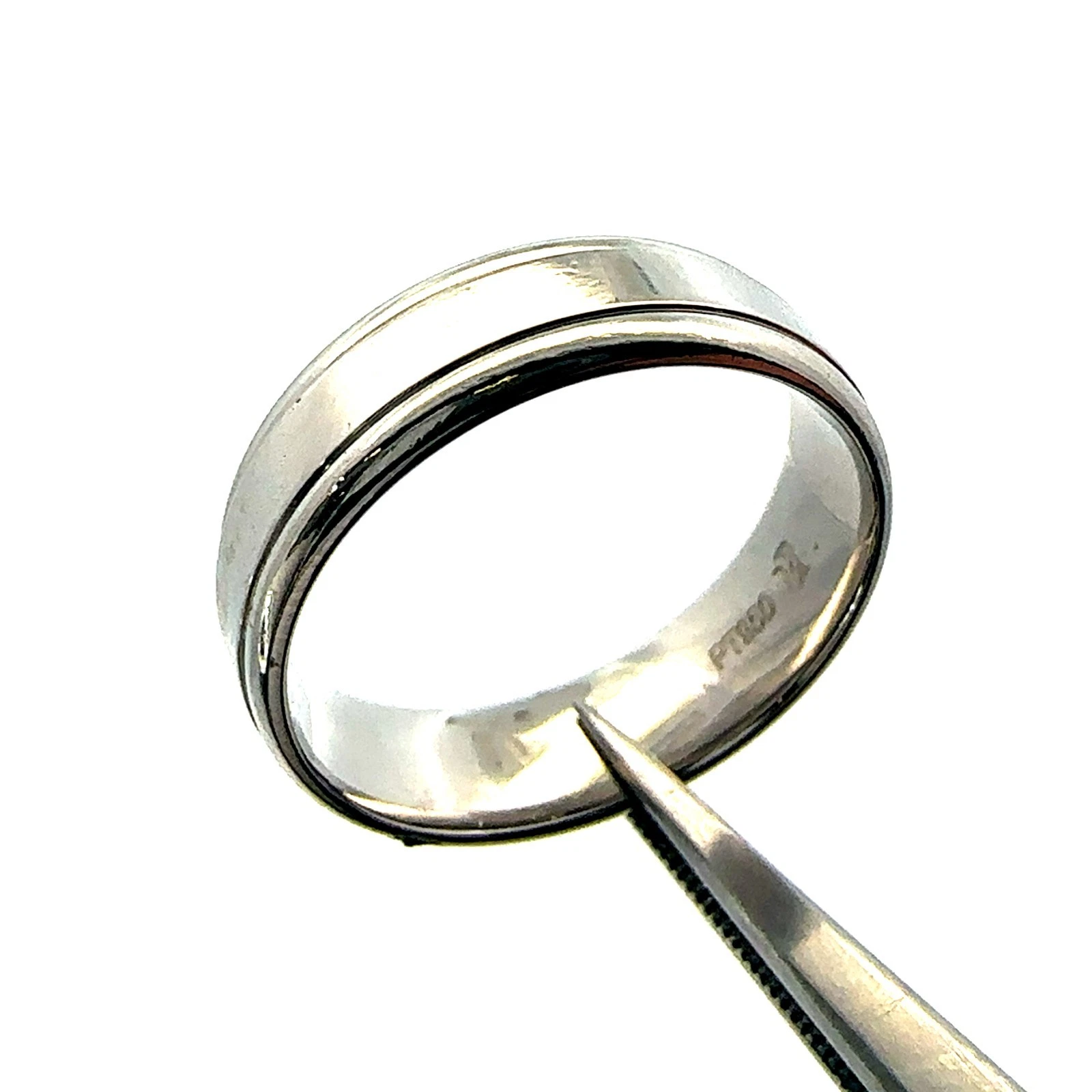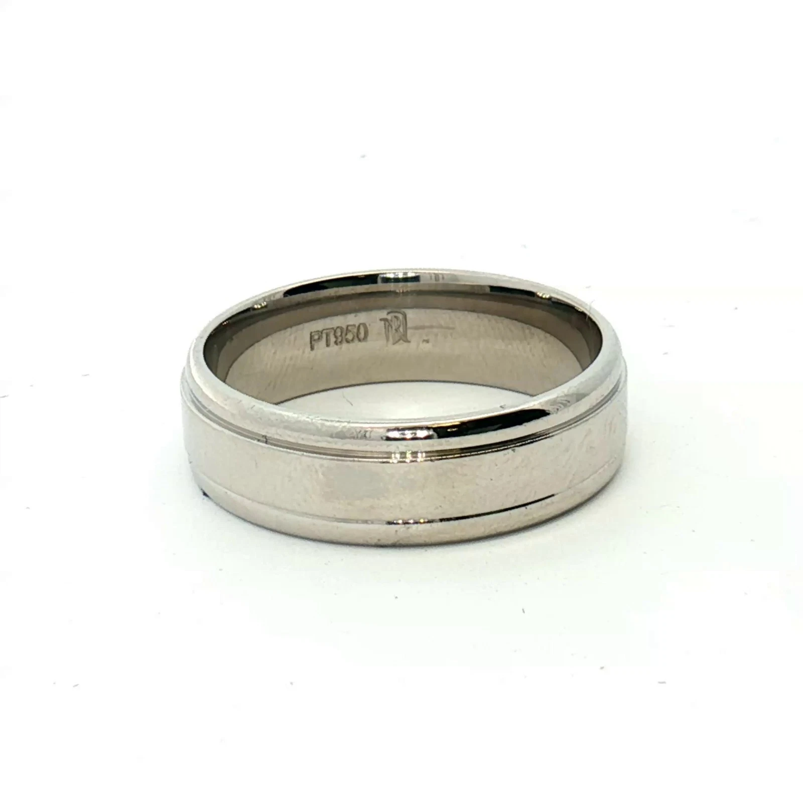 950 platinum band ring size 8.25 weighing 10 grams showcases a sleek and timeless design with a smooth polished finish that highlights the natural luster of platinum. The ring’s solid construction provides durability and a luxurious weight, making it ideal for daily wear or as a wedding band.