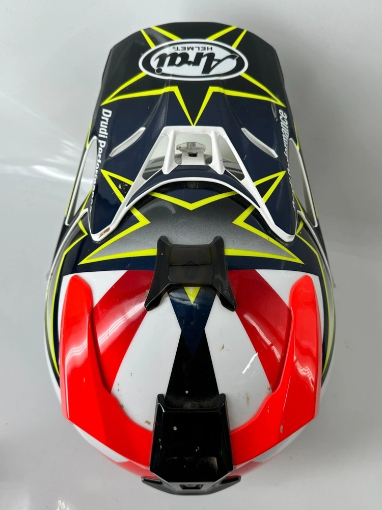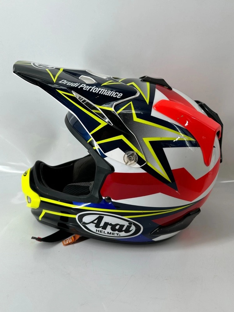 Arai VX-Pro4 Stars & Stripes Yellow Helmet in size Large designed for superior protection, comfort, and performance for off-road and motocross riders.