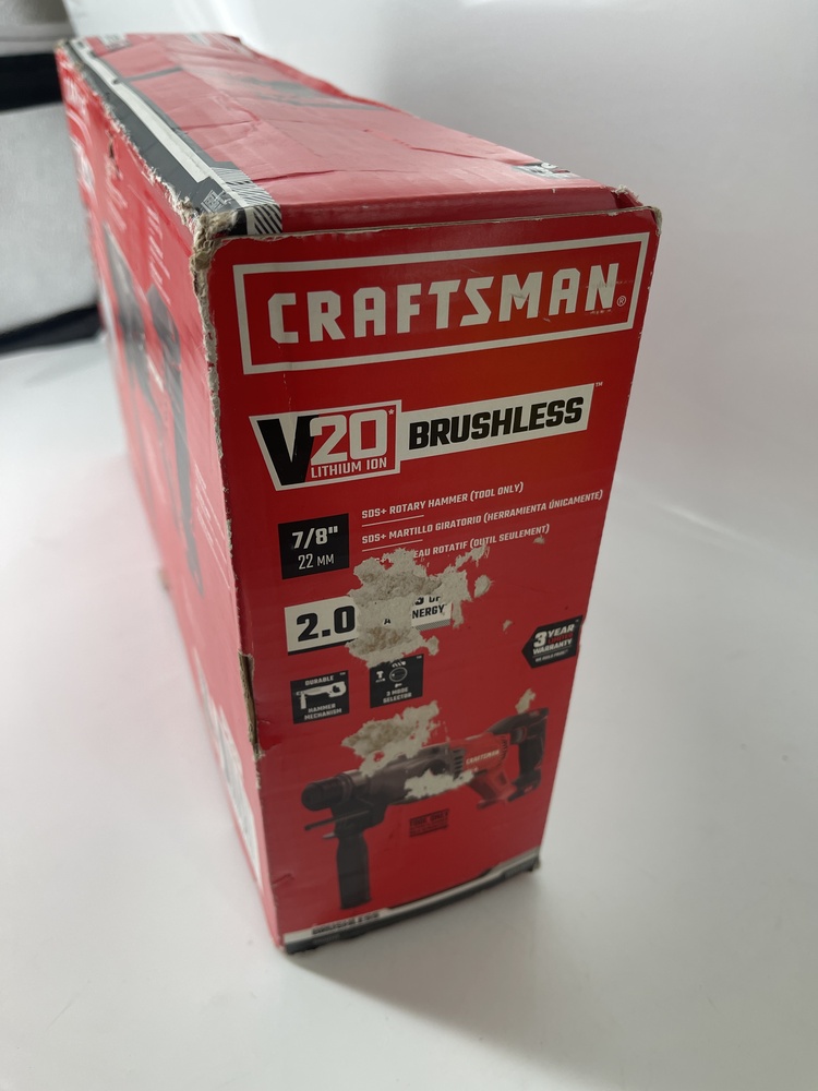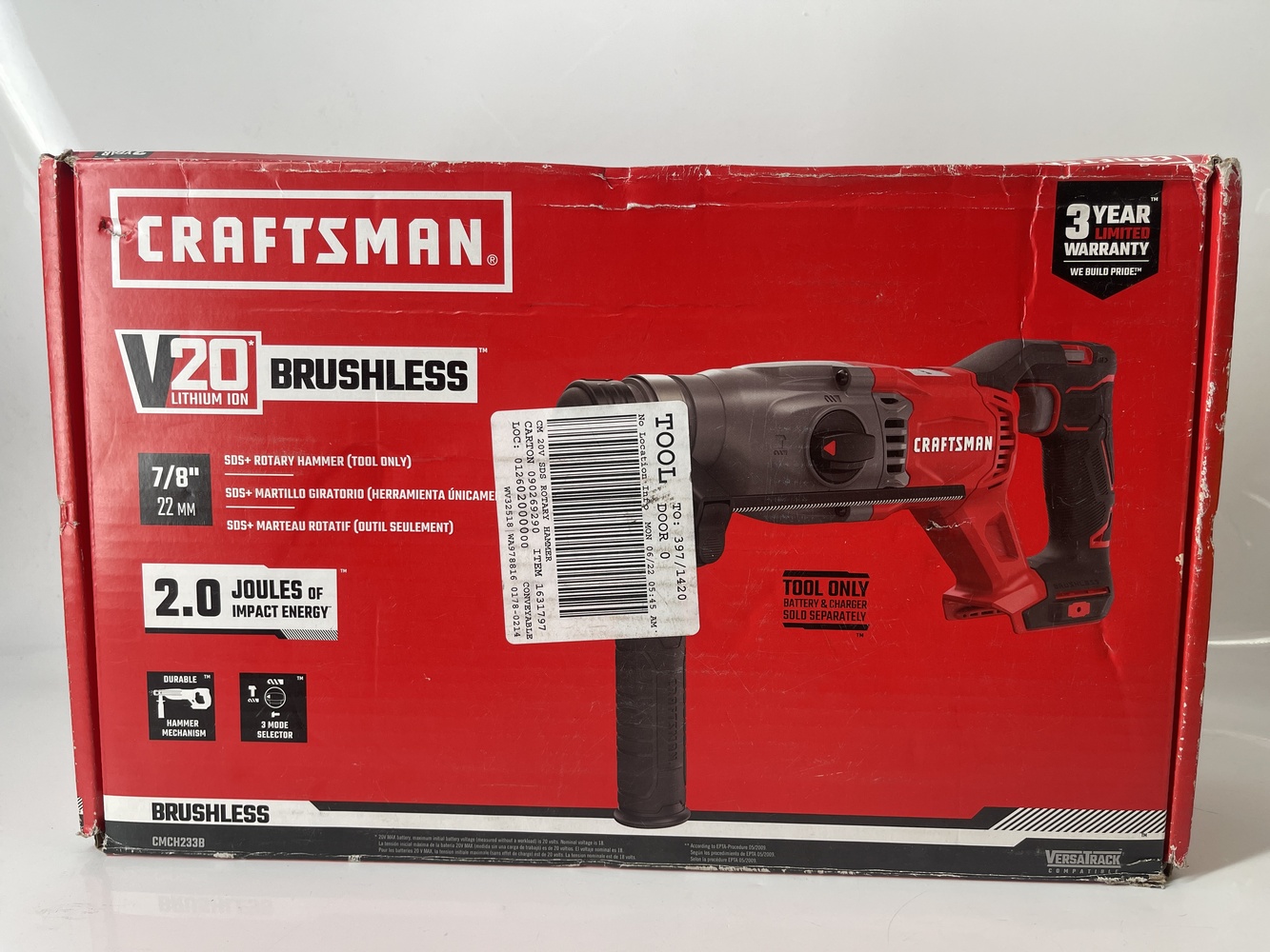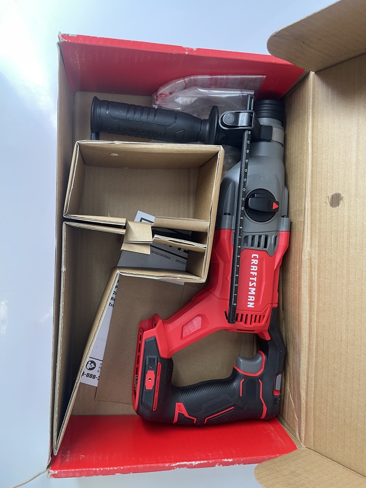 Tackle tough concrete, brick, and masonry jobs with the CRAFTSMAN V20 RP SDS Rotary Hammer Drill (7/8-Inch, Bare Tool Only). Powered by the V20 cordless system, this tool delivers powerful impact energy and superior drilling performance without the hassle of cords. Its SDS Plus chuck ensures quick bit changes, while the vibration-reduction design enhances comfort during extended use. Built for durability and precision, the CRAFTSMAN V20 RP Rotary Hammer is the perfect choice for pros and DIYers who demand dependable power and control on every job.