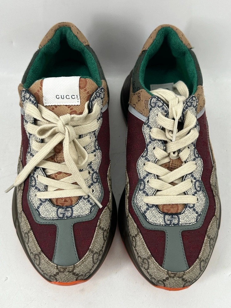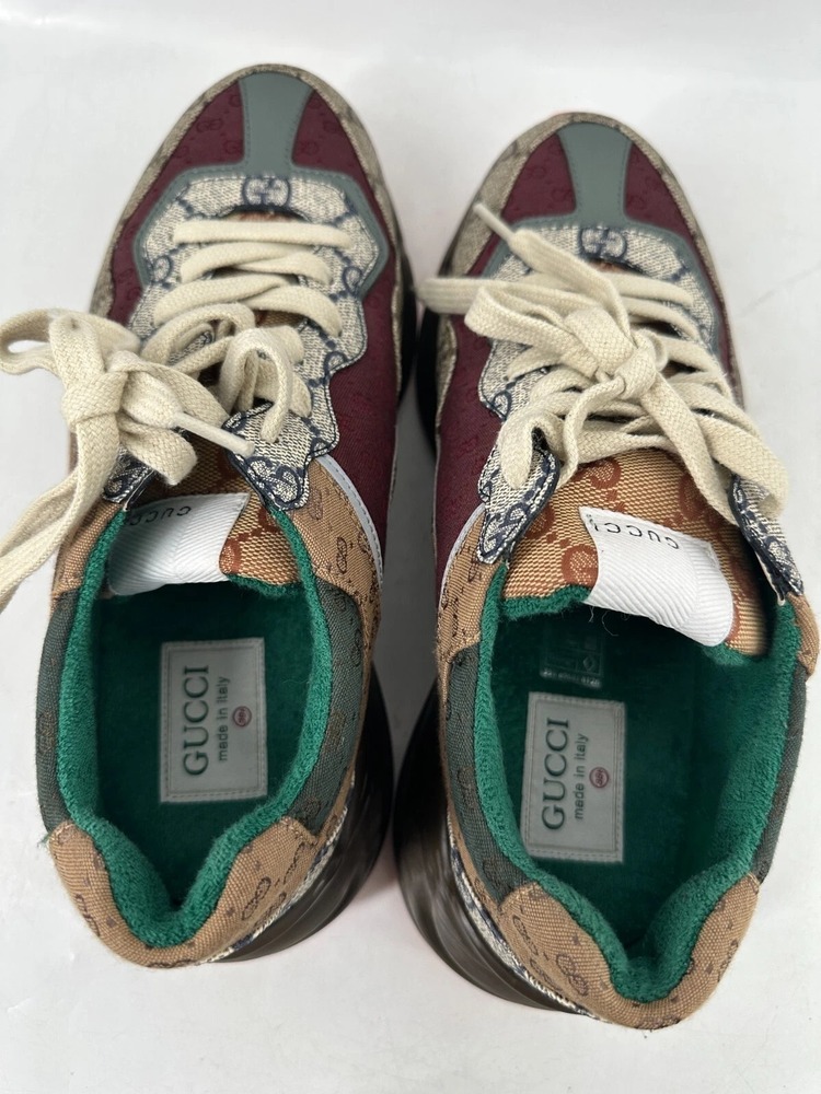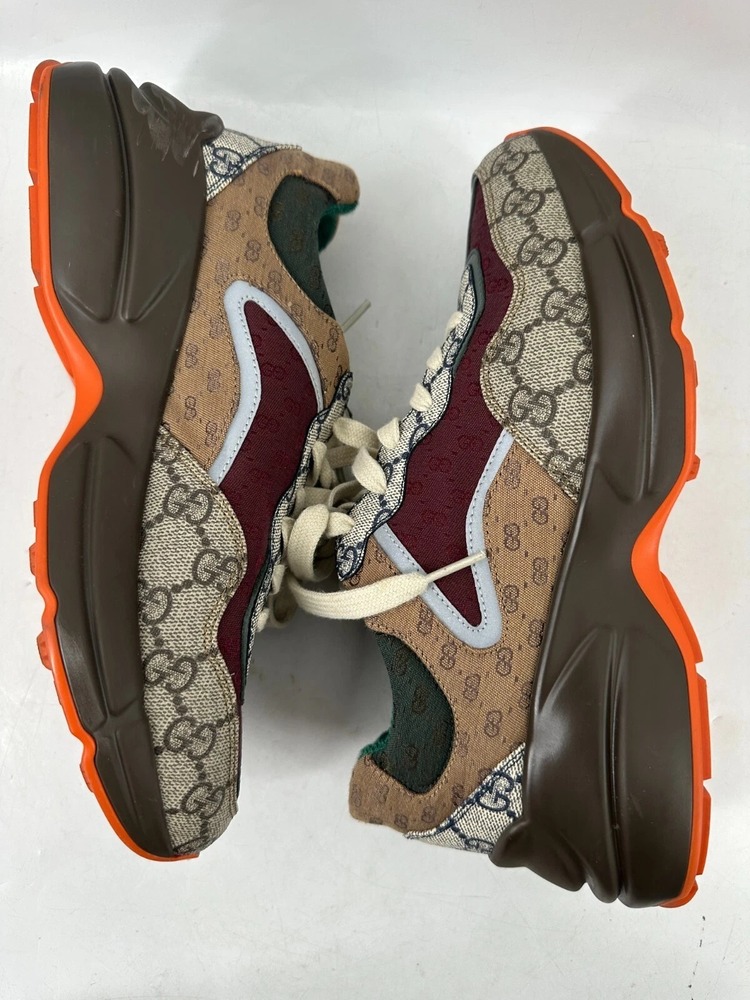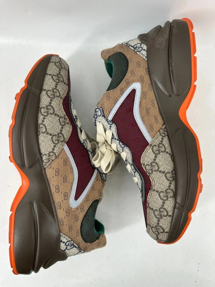 Gucci Rhyton “Brick Red” sneakers in size 38+ EU deliver a bold, fashion-forward look combined with luxurious comfort and designer detail. Known for its chunky silhouette and streetwear influence
