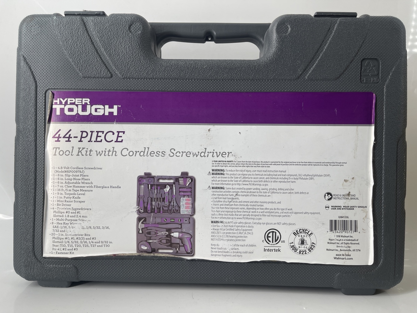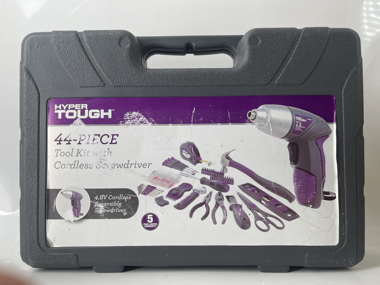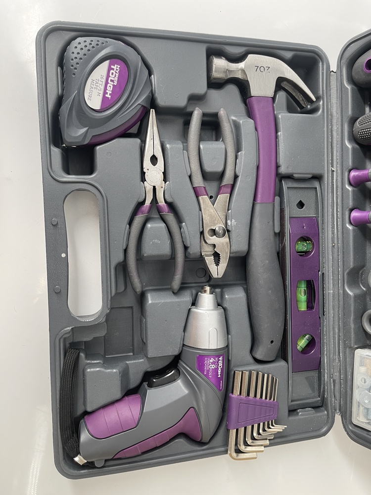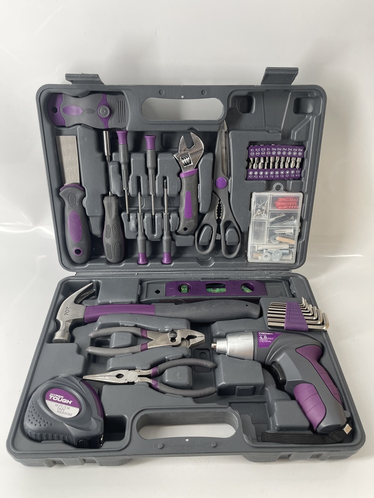 This Hyper Tough 44 Piece Tool Kit in purple comes complete with a sturdy carrying case, providing convenient storage and portability. The kit includes a variety of essential hand tools suitable for household repairs, DIY projects, and general maintenance tasks. Each tool is designed for durability and ease of use, with comfortable grips and reliable performance. The compact case keeps everything organized, making it easy to find the tool you need quickly. This used kit is in excellent condition, fully intact, and ready to tackle a wide range of projects.