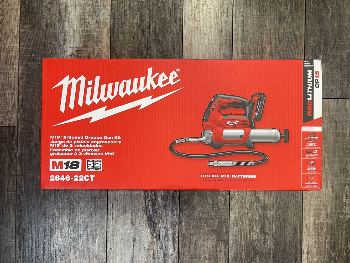 Tackle lubrication jobs quickly and efficiently with the Milwaukee 2646-22CT M18 2-Speed Grease Gun, complete with 48-inch flexible hose for easy access in tight or hard-to-reach areas. Powered by Milwaukee’s reliable M18 18V system, this tool delivers up to 10,000 PSI and offers both precision and power with its two-speed control. Ideal for automotive, heavy equipment, and industrial maintenance, this kit includes batteries and a charger—ready to work right out of the box. Durable, dependable, and built to outperform manual grease guns every time.