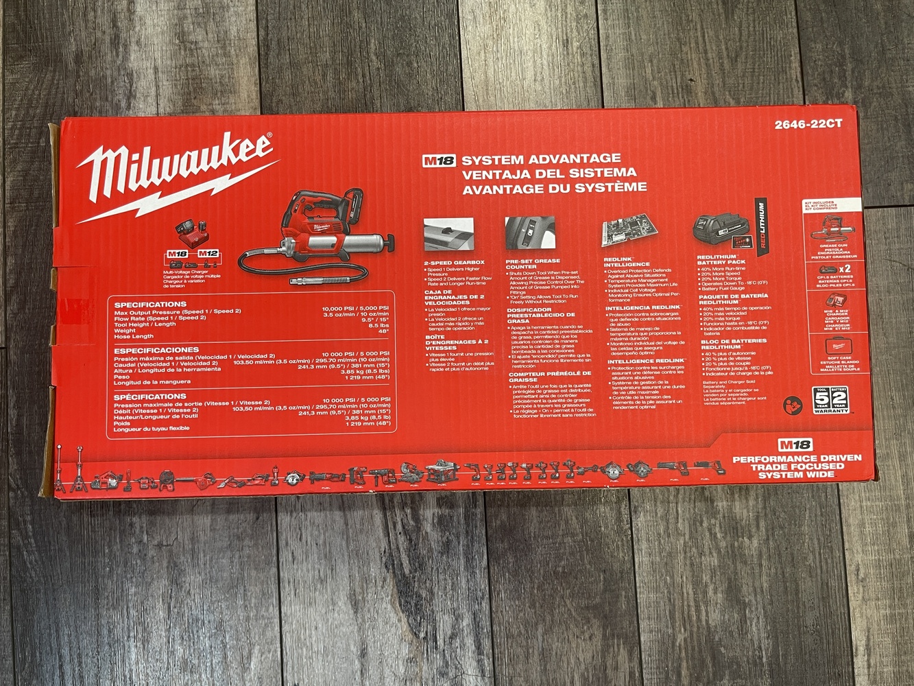 Milwaukee 2646-22CT M18 18V 2-Speed 48-Inch Hose Grease Gun w/ Batteries