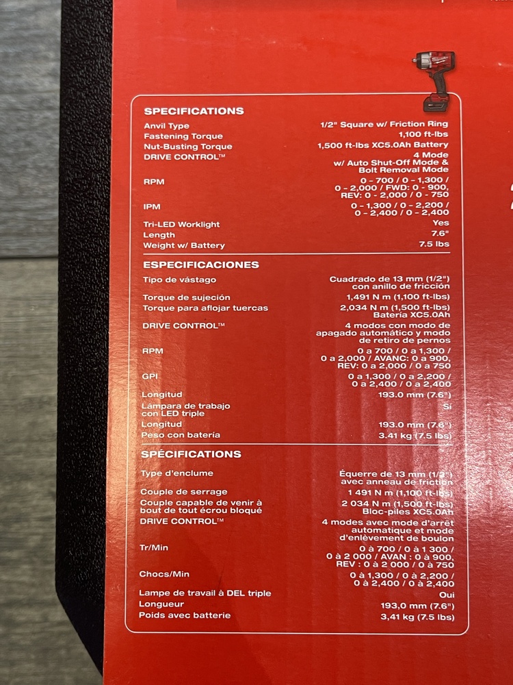 The Milwaukee 2967-22 M18 FUEL 18V 1/2" High Torque Impact Wrench Friction Ring Kit delivers exceptional power and precision with its brushless POWERSTATE motor and REDLINK PLUS intelligence, offering up to 1,200 ft-lbs of nut-busting torque and 700 ft-lbs of fastening torque.
