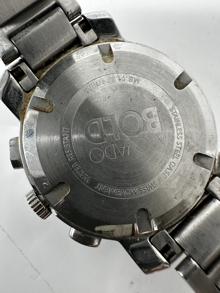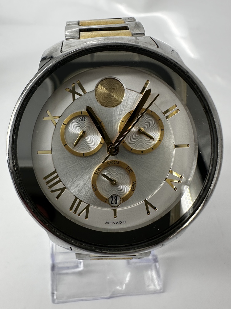 The Movado Bold?MB?01.3.14.6103 with a size?6.5" bracelet features a silver?tone dial punctuated by refined gold?tone hands and minimalist hour indices, maintaining the signature Movado single dot at 12?o’clock.