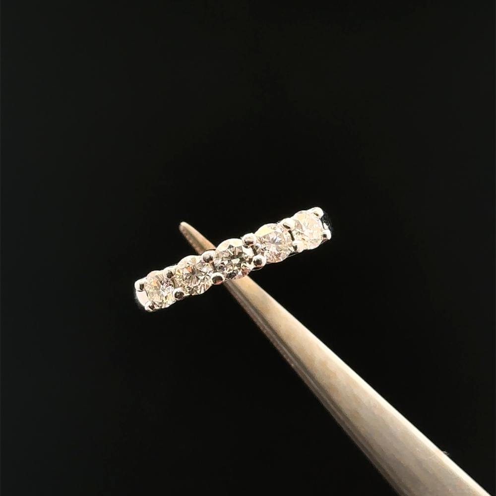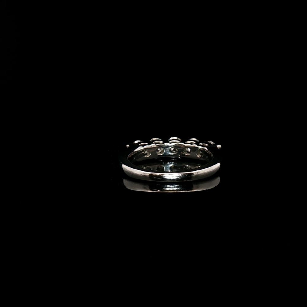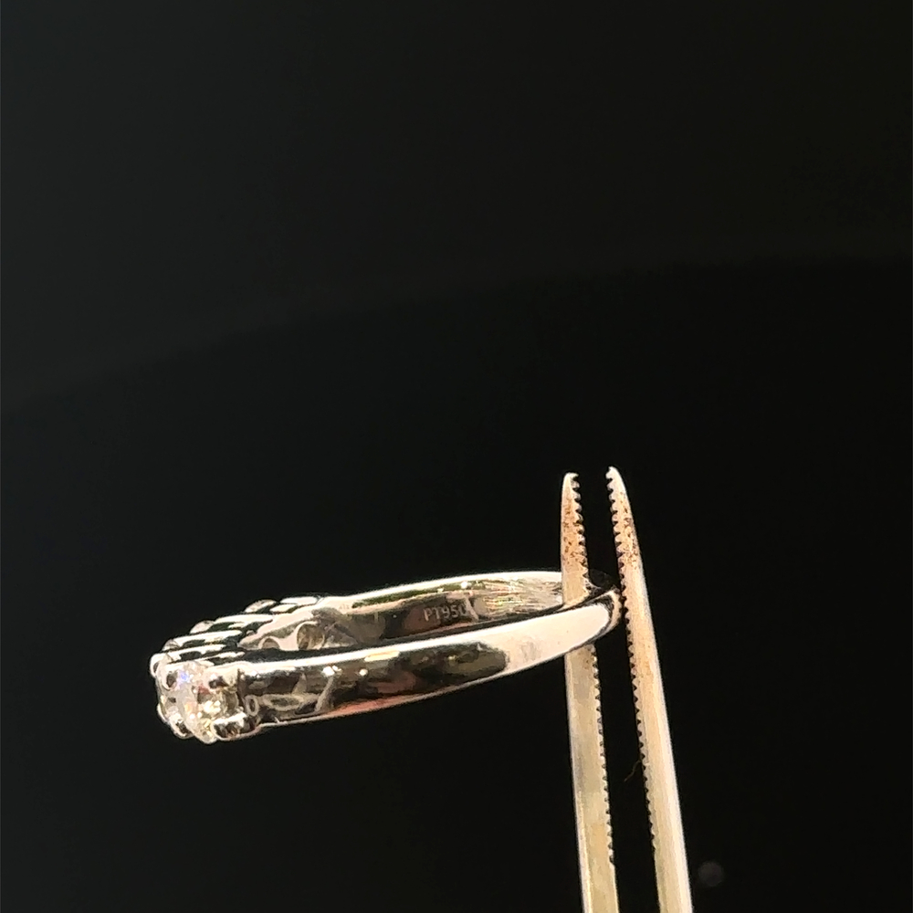 This platinum (950) band features diamonds totaling approximately 0.90 carat, offering exceptional brilliance and a luxurious sparkle. The ring is a size 5 and showcases a classic, timeless design that highlights the elegance of both the diamonds and the platinum setting. Its polished finish enhances the sophisticated appeal, making it an exquisite choice for special occasions or everyday wear.
