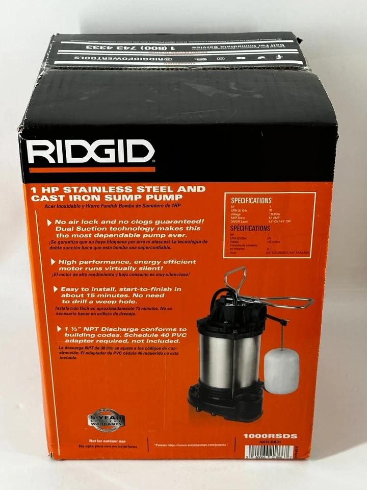RIDGID 1000RSDS 1 HP Stainless Steel Dual Suction Sump Pump
