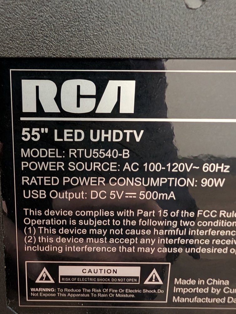 RCA 55" LED TV With Remote (Not a Smart TV)