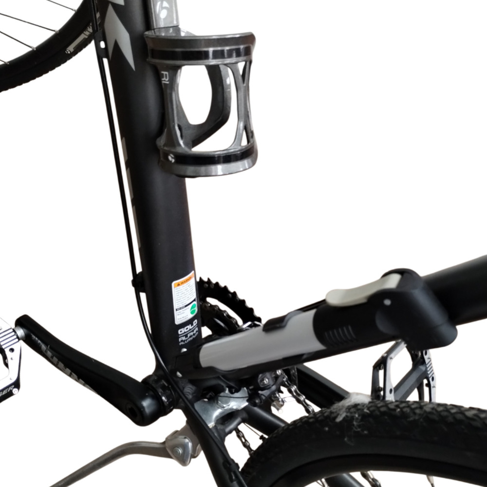 Includes handheld tire inflator, as well as attached holder for inflator, BBB brand bell, bottle holder, and smart device holder