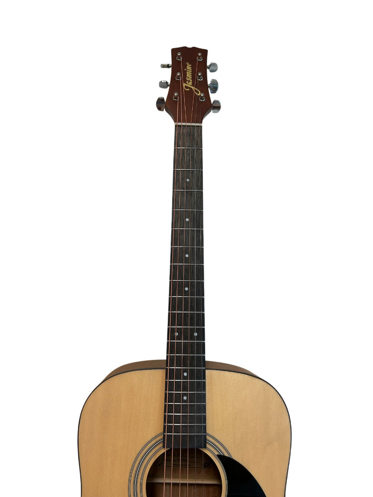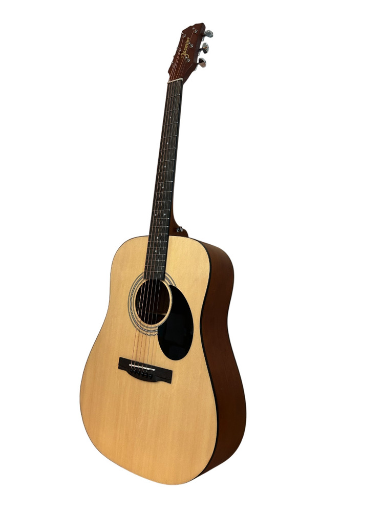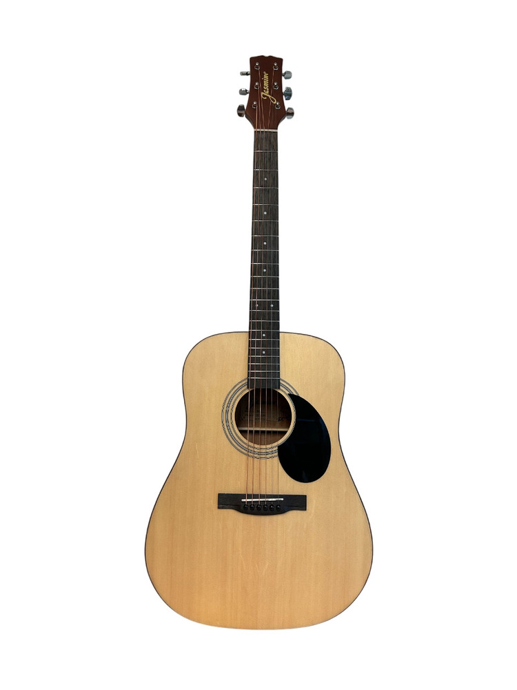 The Jasmine S35-U is a full-size dreadnought built for players who want strong projection and reliable tone at an affordable price. Featuring an agathis top with satin finish, rosewood fingerboard and bridge, and a slim neck profile, it offers comfortable playability for both beginners and seasoned players.