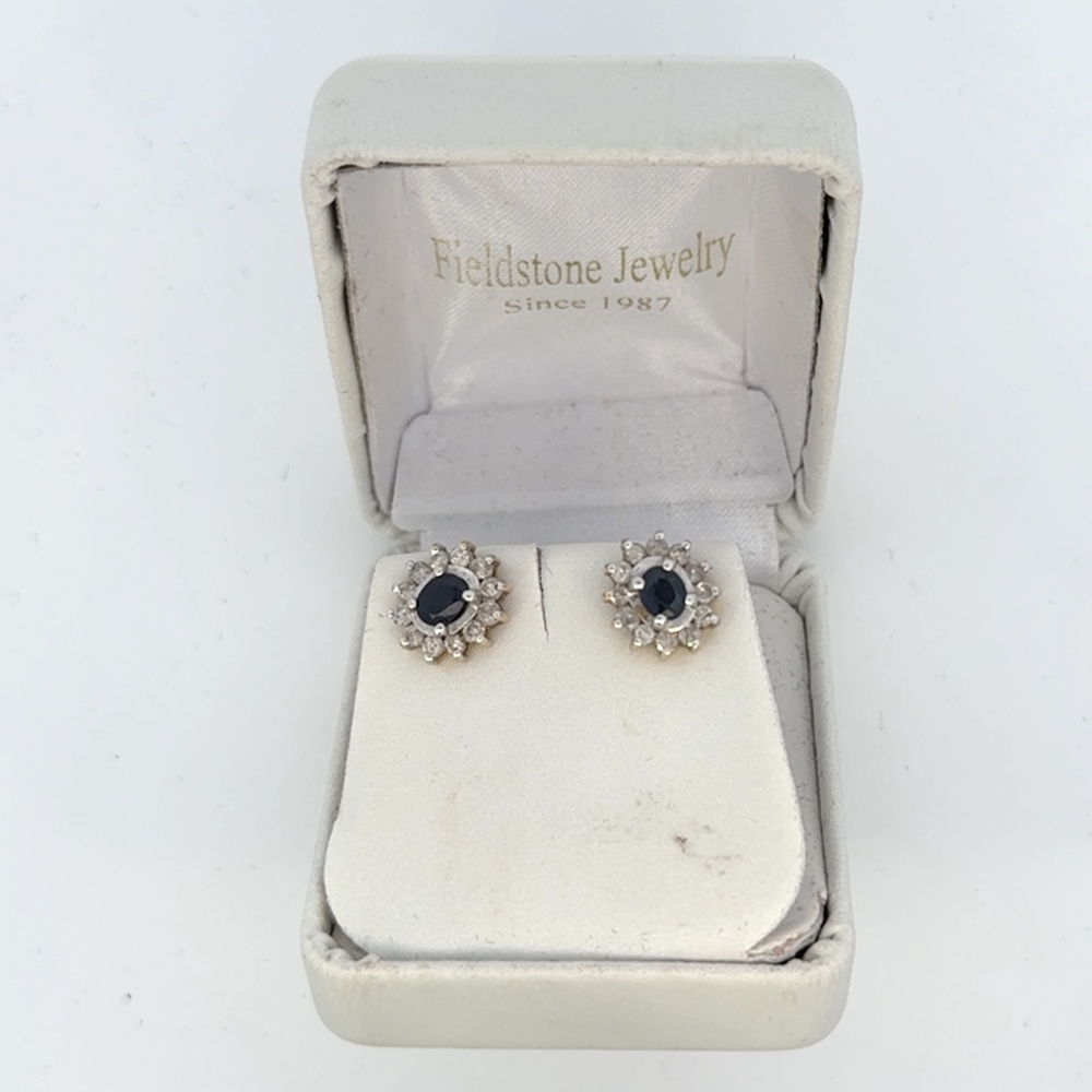 14kt Yellow Gold Earrings with Sapphire & Diamond | Fieldstone Jewelry & Pawn