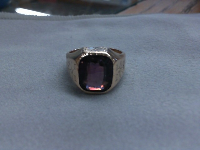 10k Flower Engraved Rose Gold & Amethyst Ring