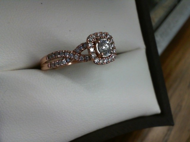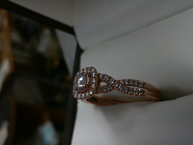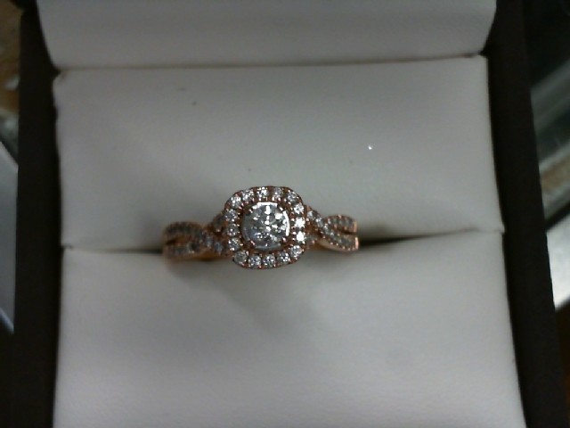Gold 10kt Rose 2.70gms Ring 10K ROSE GOLD ENGAGEMENT RING WITH .15 DIAMOND HALO SETTING WITH TWISTED BAND Loc:GOLD CASE