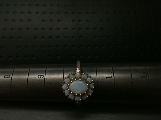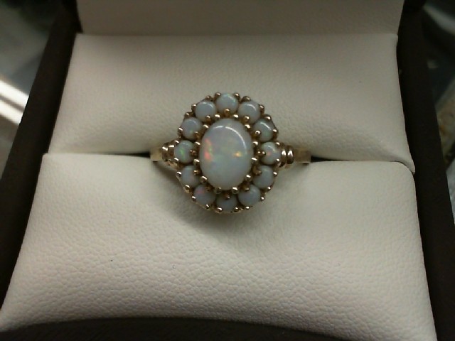 Gold 10kt 2.80gms Ring 10K YELLOW GOLD WITH 1 OVAL CENTER OPAL SURROUNDED BY 12 SMALL ROUND OPALS Loc:GOLD CASE