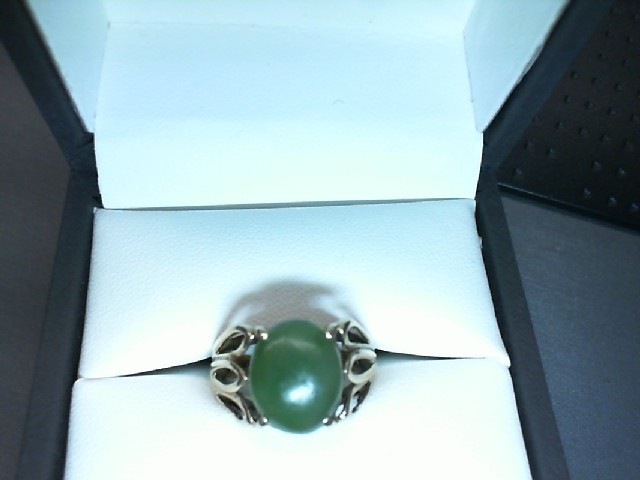 Gold 10kt 4.90gms Ring 10K YELLOW GOLD WITH LARGE OVAL GREEN JADE Loc:GOLD CASE