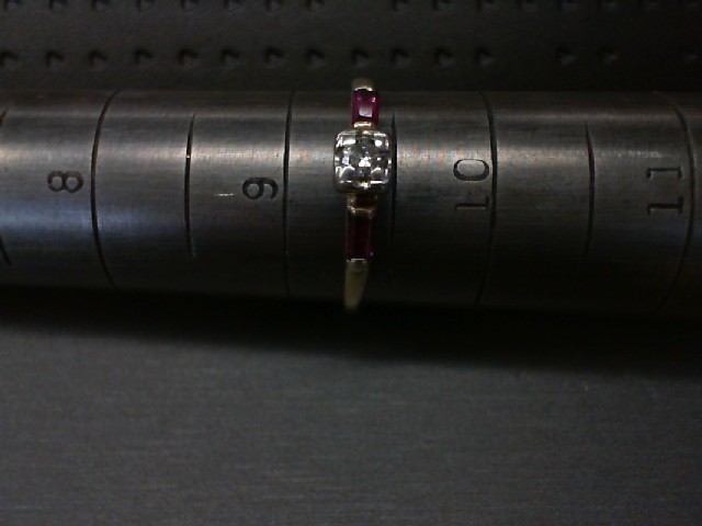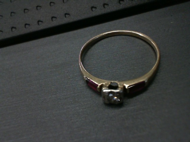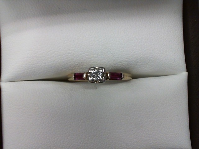 Gold 14kt 1.47gms Ring 14K YELLOW GOLD .15CT ROUND DIAMOND AND 2 BAGUETTE RUBYS RING Loc:GOLD CASE 1 Round Faint Color SI1 Diamond 15.00pts. 0.150cts. 0.03g