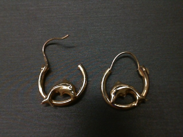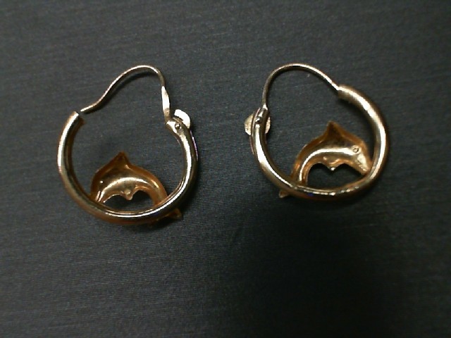 Gold 14kt 0.40gms Earrings 14K YELLOW GOLD DOLPHIN HOOP EARRINGS Loc:GOLD CASE