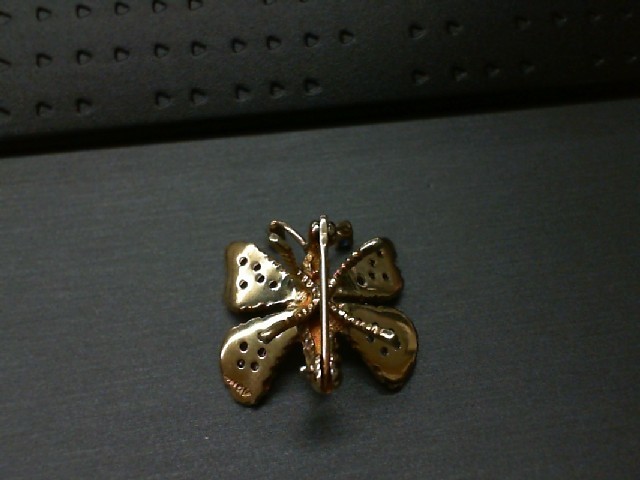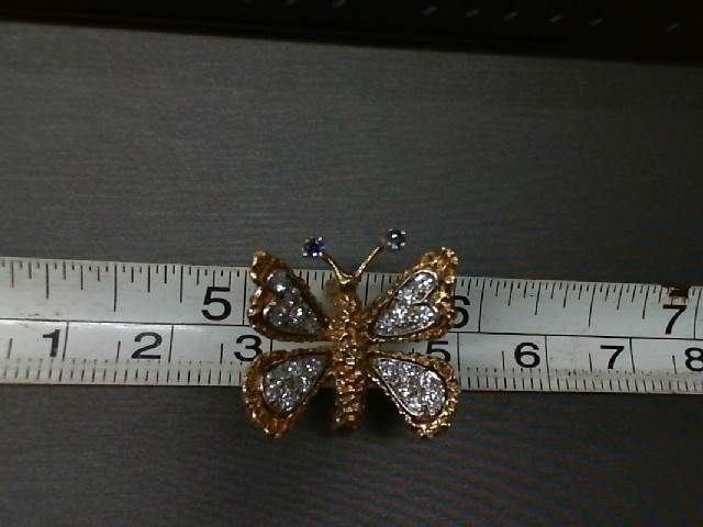 Gold 18kt 6.20gms Broach 18K YELLOW GOLD BUTTERFLY PIN WITH DIAMOND WINGS WITH 2 SAPPHIRES Loc:GOLD CASE