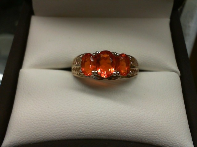 Gold 14kt 3.90gms Ring 3 OVAL CUT ORANGE FIRE OPALS IN14K RING Loc:GOLD CASE