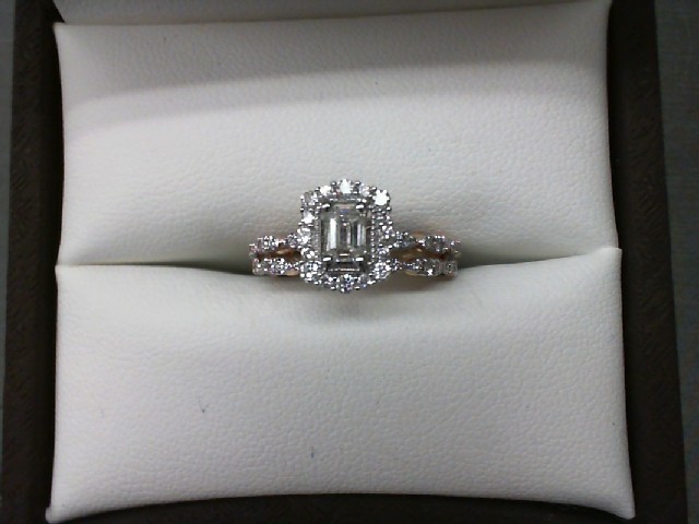 Gold 14kt 3.80gms Ring Celebration 3/4 CT. T.W. Emerald-Cut Diamond Frame Scallop Shank Bridal Set in 14K Two-Tone Gold Loc:GOLD CASE