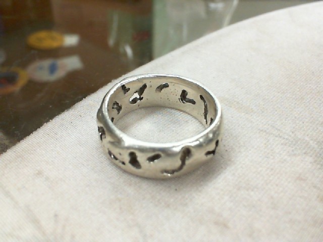 This impressive heavy sterling silver band boasts a 0.925% purity level and weighs 9.80 grams. The size 9 ring is expertly crafted with a sophisticated cutout design providing a unique aesthetic. With its combination of weight and purity, it exemplifies luxury and durability.