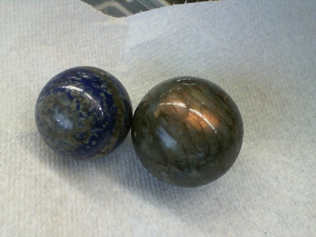 Labradorite and Lapis Lazuli spheres are popular in crystal healing due to their metaphysical properties.