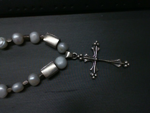 - NECKLACE FRESH WATER PEARLS WITH STERLING BEADS AND CROSS