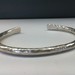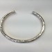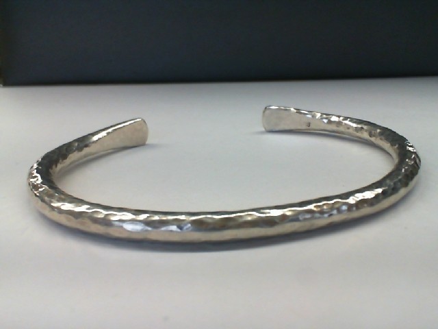 This heavy 40.70gms 0.925% silver bracelet boasts a hammered/textured finish, exhibiting exceptional craftsmanship. Designed as a cuff, it comfortably fits an 8-inch wrist, making it a versatile accessory for all. Add a touch of sophistication to your style with this durable silver cuff bracelet.