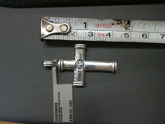 Silver 0.999% 9.60gms Pendant DAVID YURMAN CHEVRON CROSS - RETAILS $295.00 Cross Cable Pendant Loc:STERLING CASE