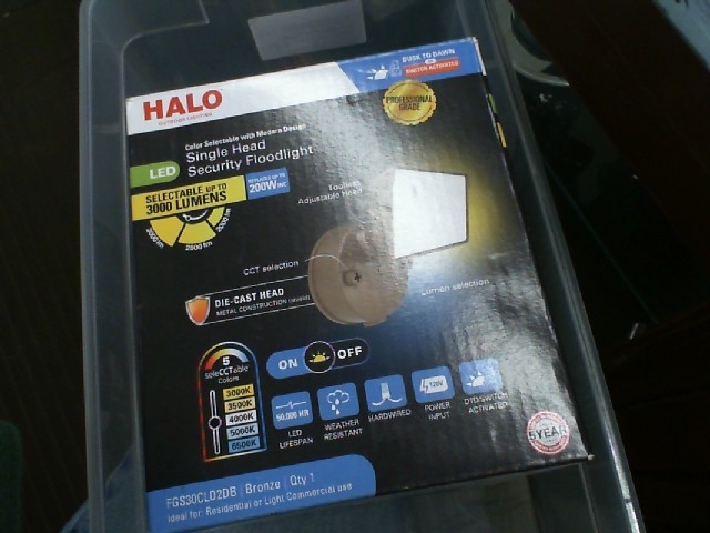 The Halo Single Head Security Spotlight, new in box and with SKU# 080083292936, offers superior home security lighting. It features advanced detection technology and provides bright, energy-efficient illumination. Suitable for outdoor use, it enhances security features while also doubling up as functional outdoor lighting. New in Box.