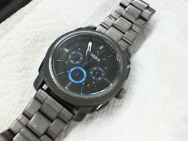 - Watch Band: Smoke gray, durable stainless steel bracelet band with a secure fold-over clasp closure; links can be removed for a customized fit; interchangeable with all 24mm Fossil watch straps.