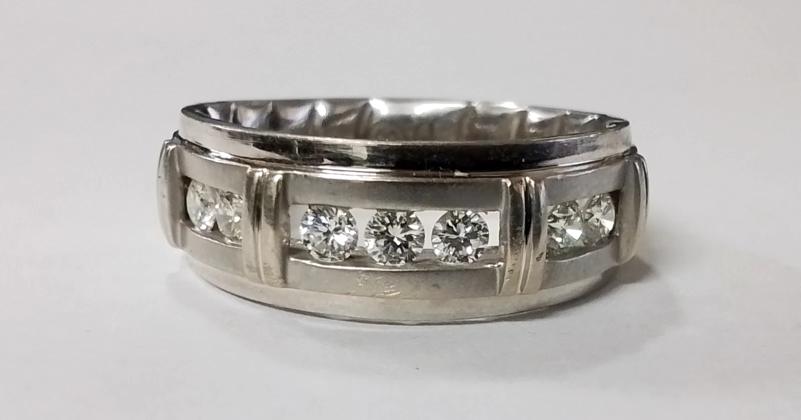 Gold 10kt 8.20gms Ring WHITE Gold And Diamond Ring, 10kt, 8.20 Grams; 7 - 0.08 Ct Dia Ring .50TCW Loc:SHELF1 1 Diamond 8.00pts. 0.080cts.