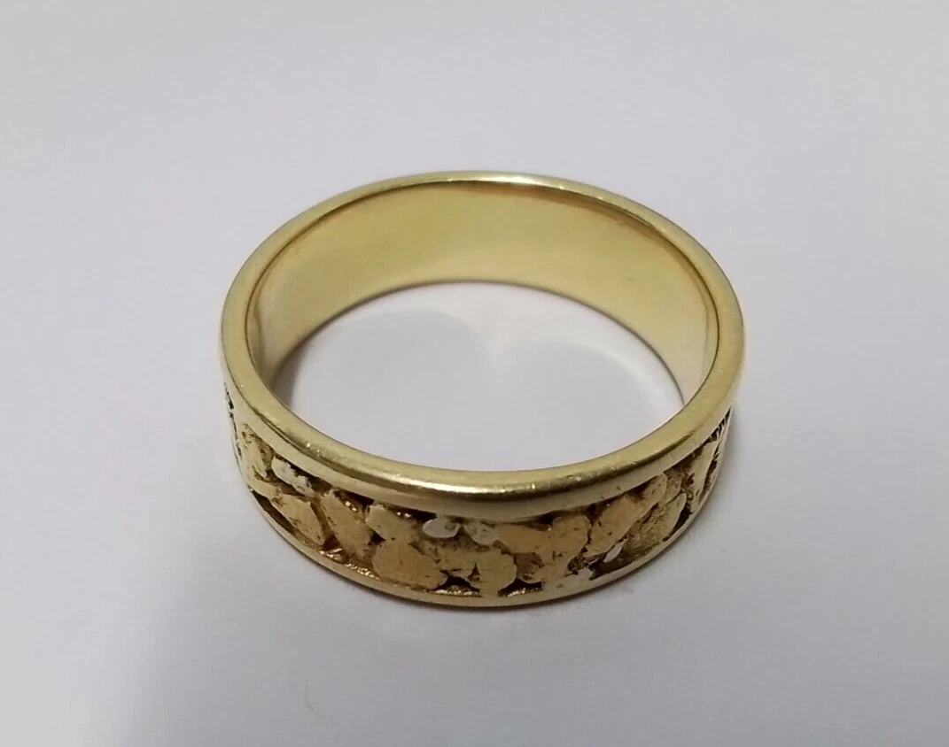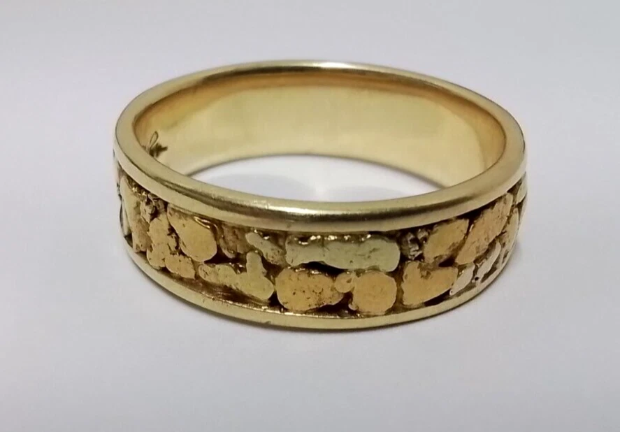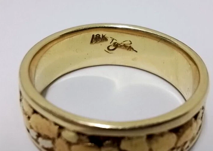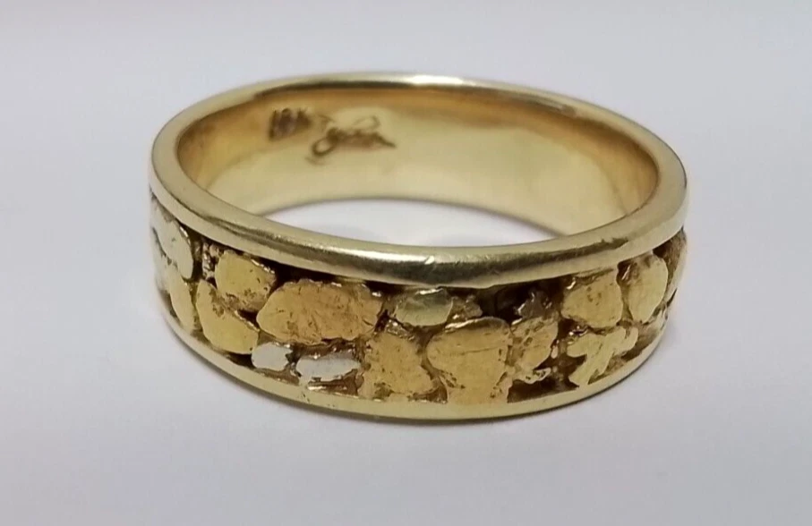 18K Taylor Brand Gold Nugget Inlay Ring. Weight of 12.3 Grams and the ring Size is 11.75