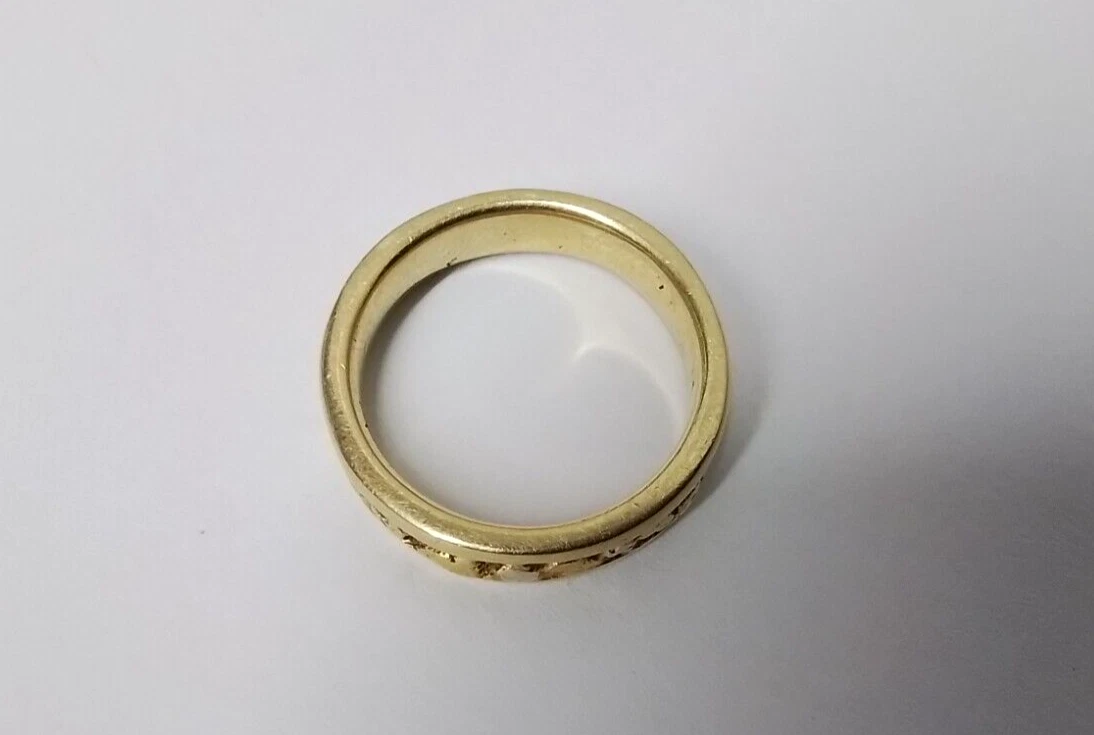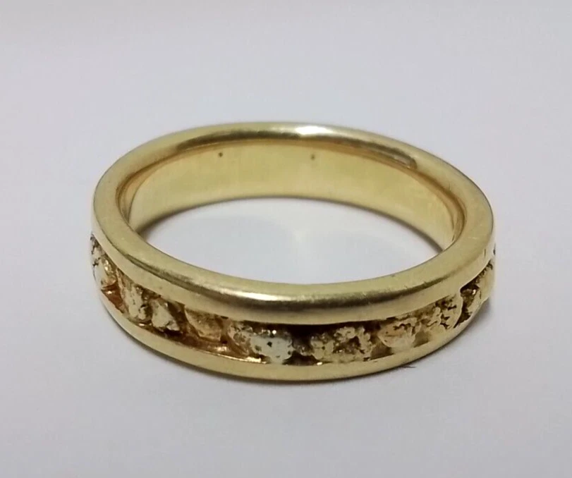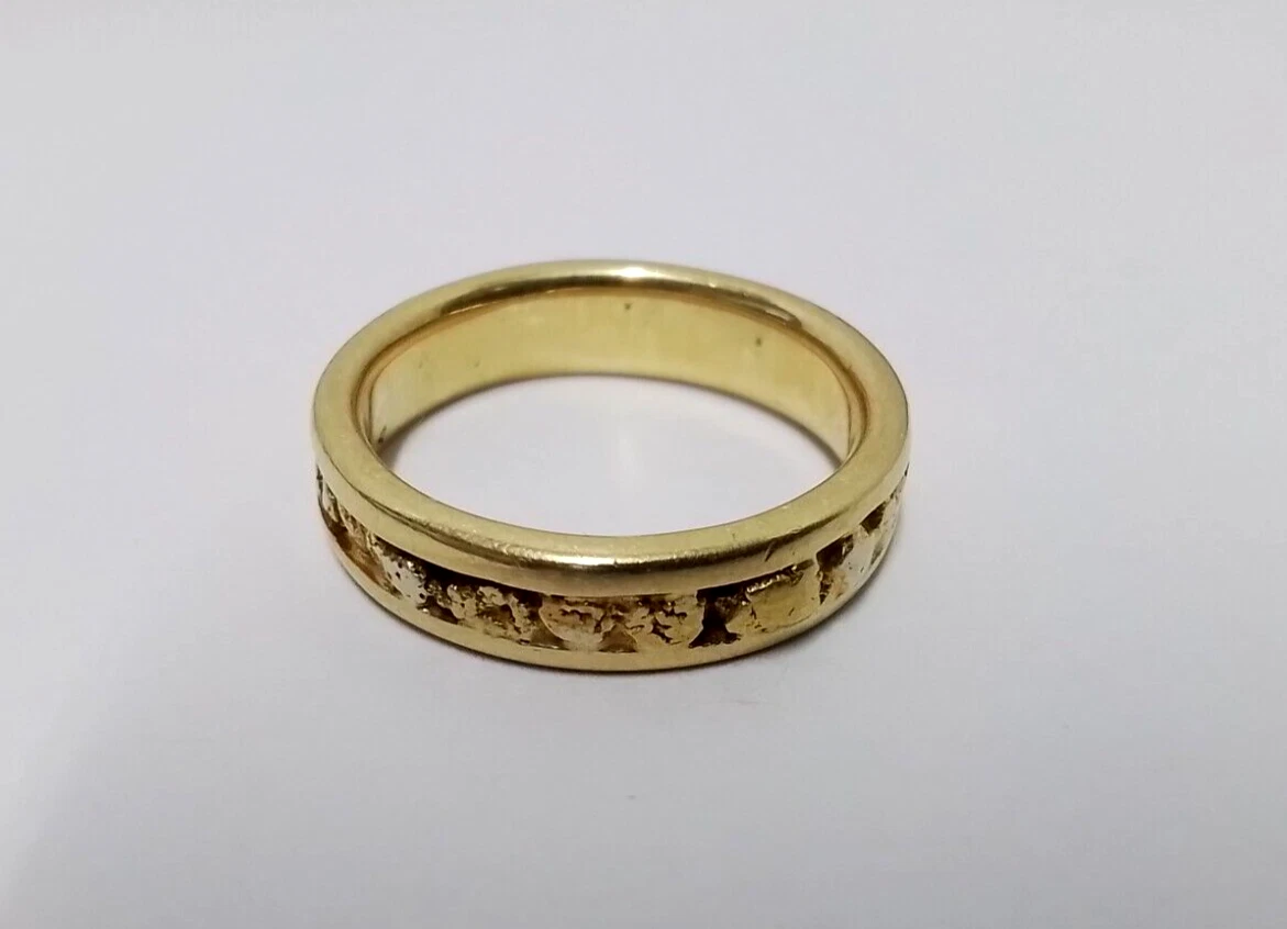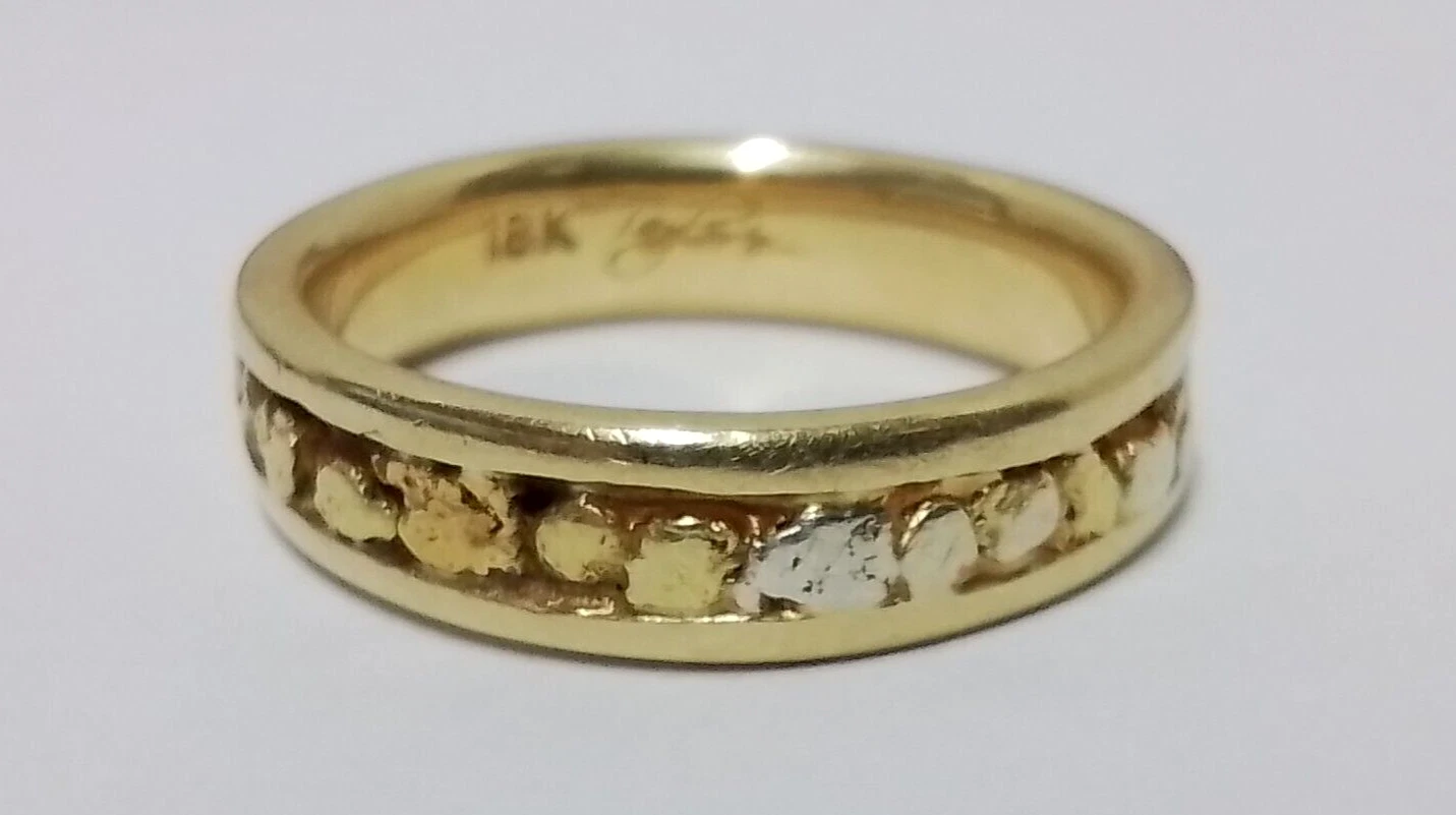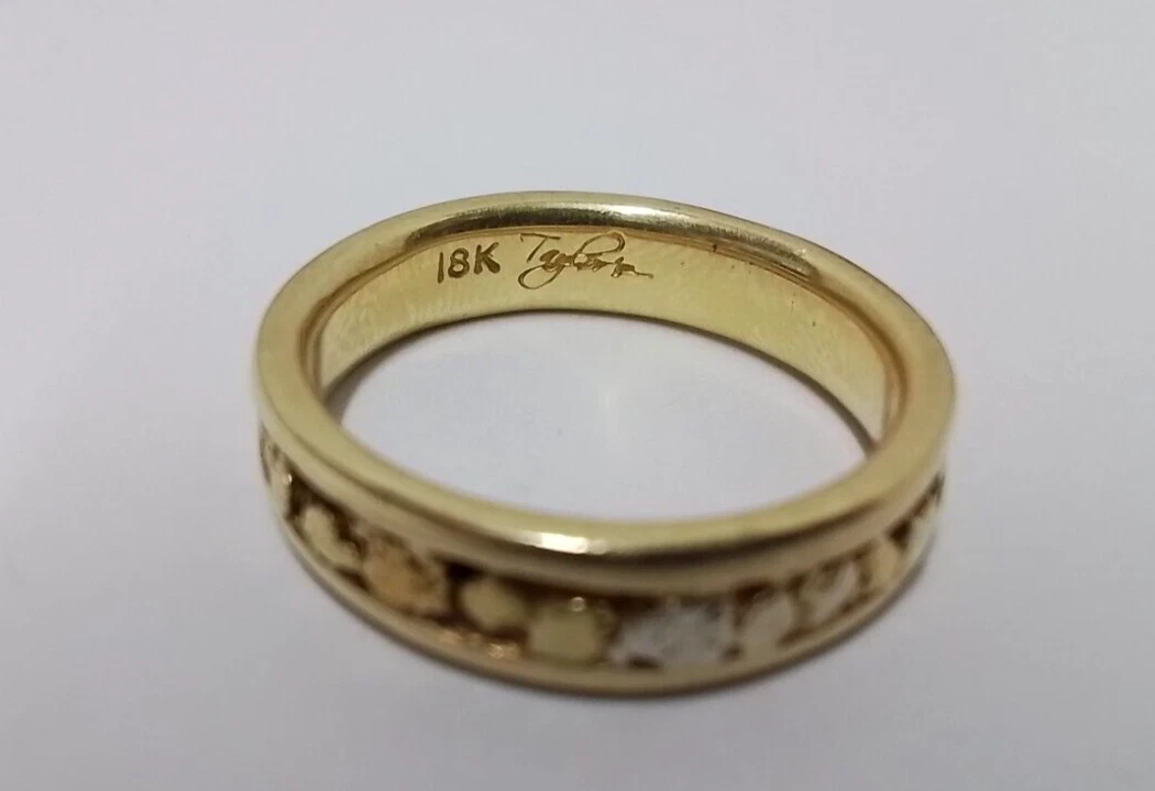 18K Taylor Brand Gold Nugget Inlay Ring. Weight of 5.9 Grams and the ring Size is 5.75 but could possibly fit size 6