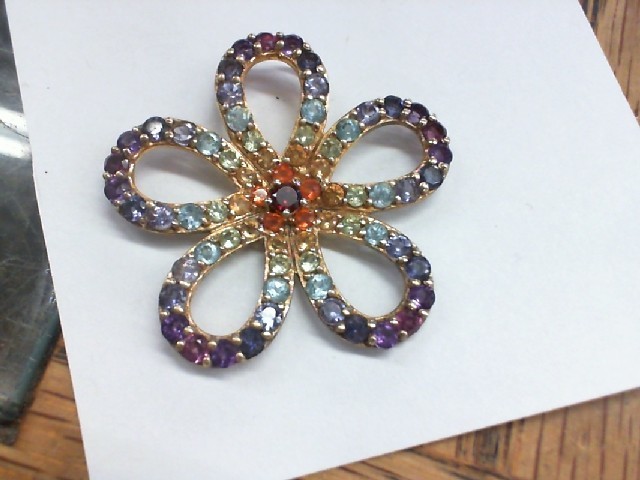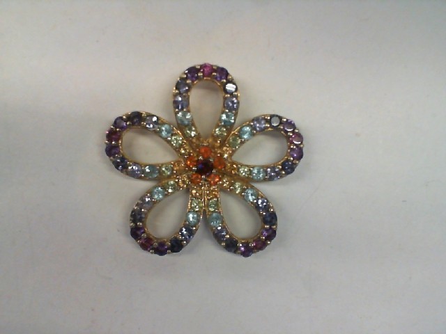 Adorn yourself with a Gold over .925 Sterling Silver Pendant, weighing 5.30gms. This FLOWER PENDANT is studded with a spectrum of Multi-Colored Gemstones, adding a touch of opulence to your ensemble. It's an exquisite blend of luxury and artistry.