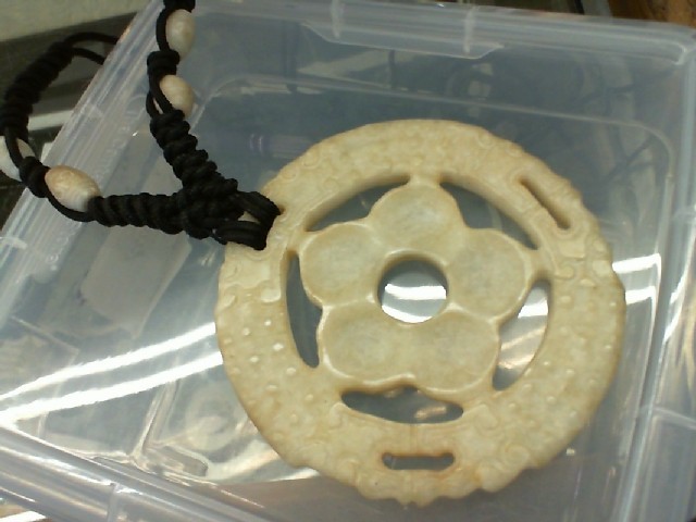 Hetian Nephrite White Jade/Jadeite Amulet - Flower Amulet with Beads & Black Macrame Cord