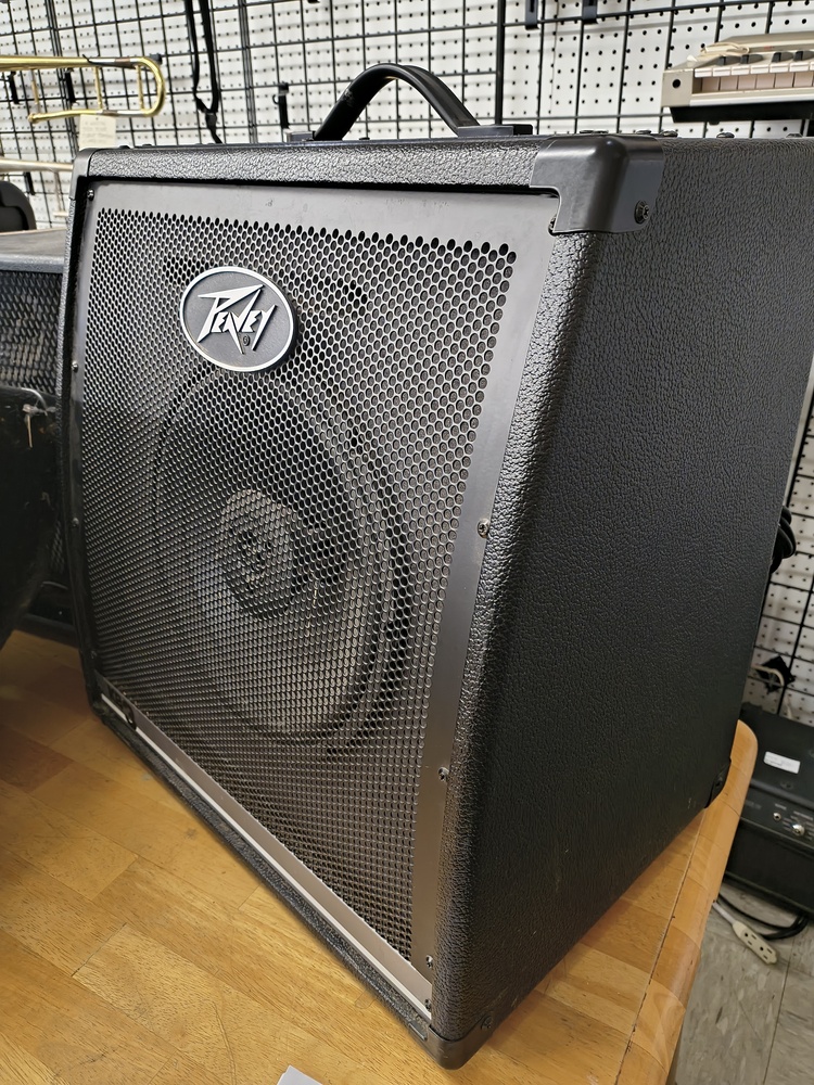 The Peavey Kb3 Black 60 Hz Amplifier is a robust electronic keyboard amplifier suitable for live performances. It delivers 60 watts of power, has four separate channels, and features a 12-inch speaker with a tweeter. Additional features include an XLR input and effects send/return. Perfect for professional musicians.